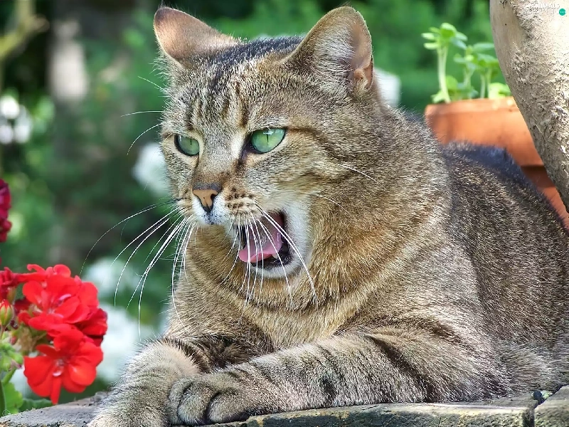 Flowers, Gray, kitten