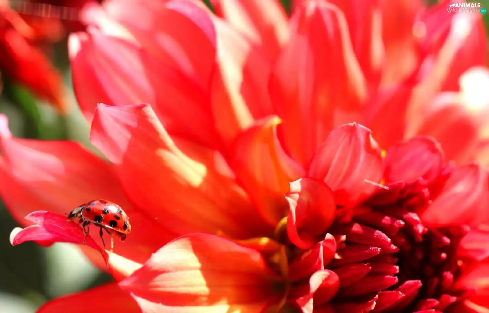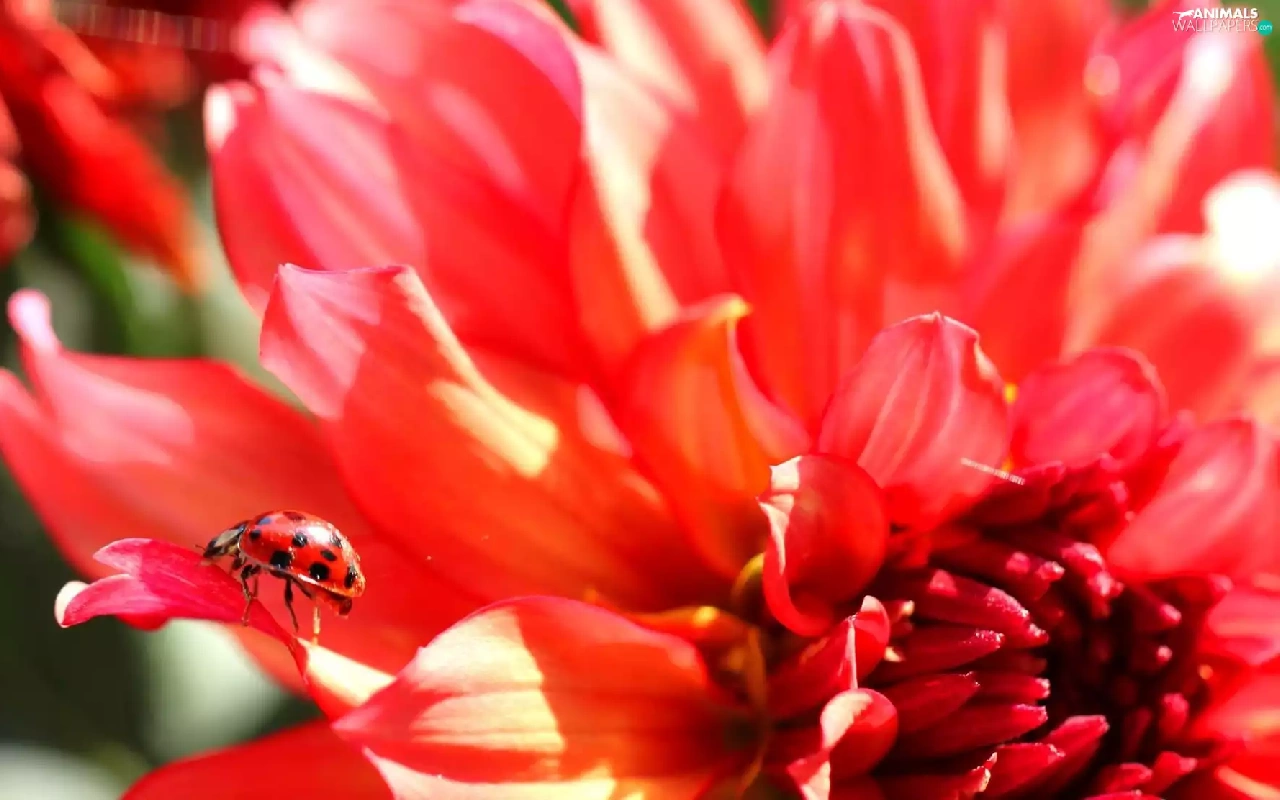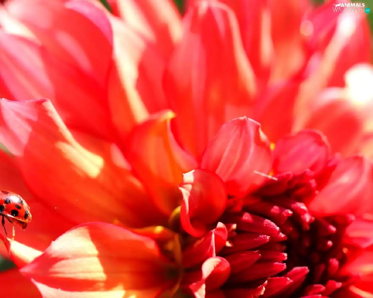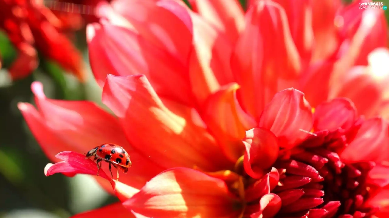 ladybird, Red, Colourfull Flowers