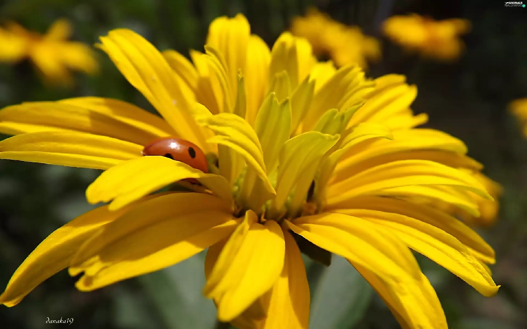 ladybird, Yellow, Colourfull Flowers