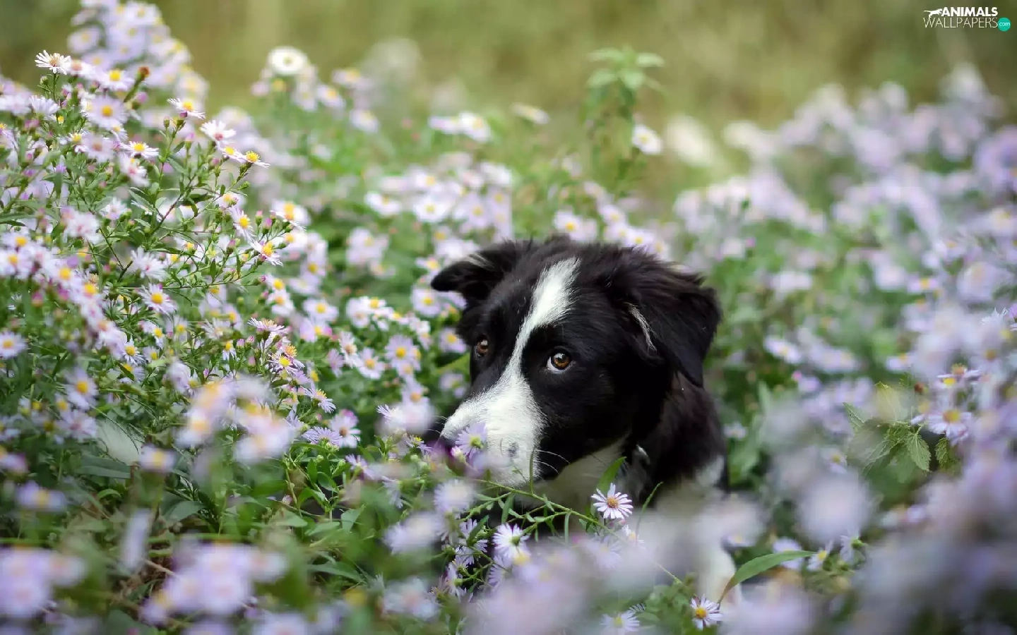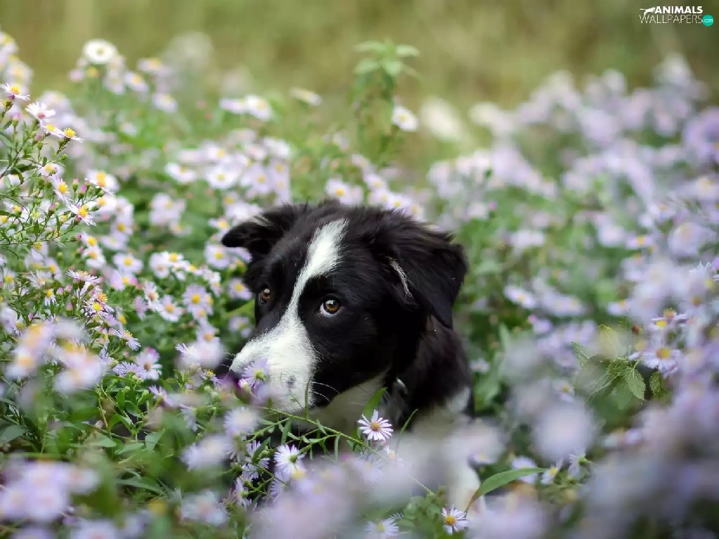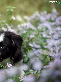 Flowers, dog, Meadow