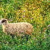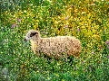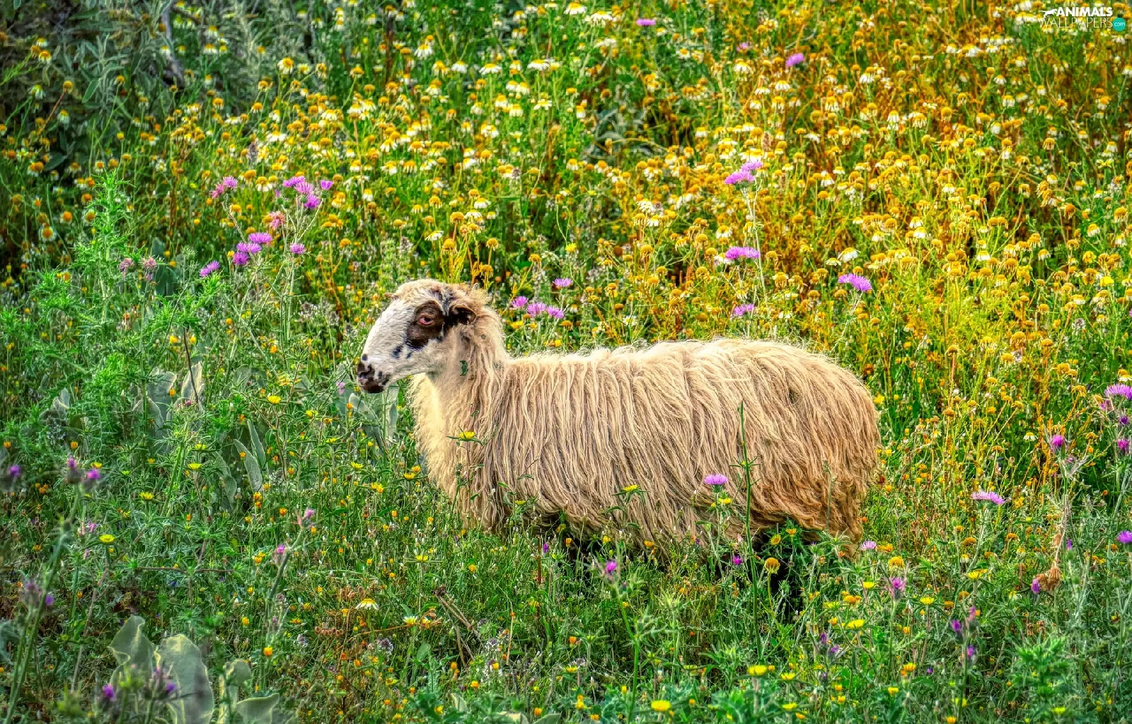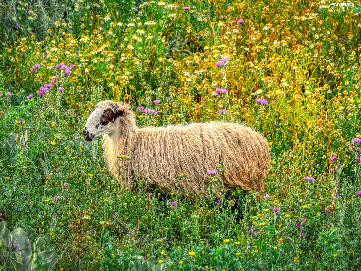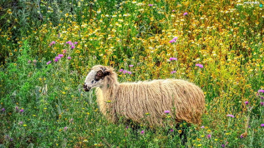 Flowers, sheep, Meadow