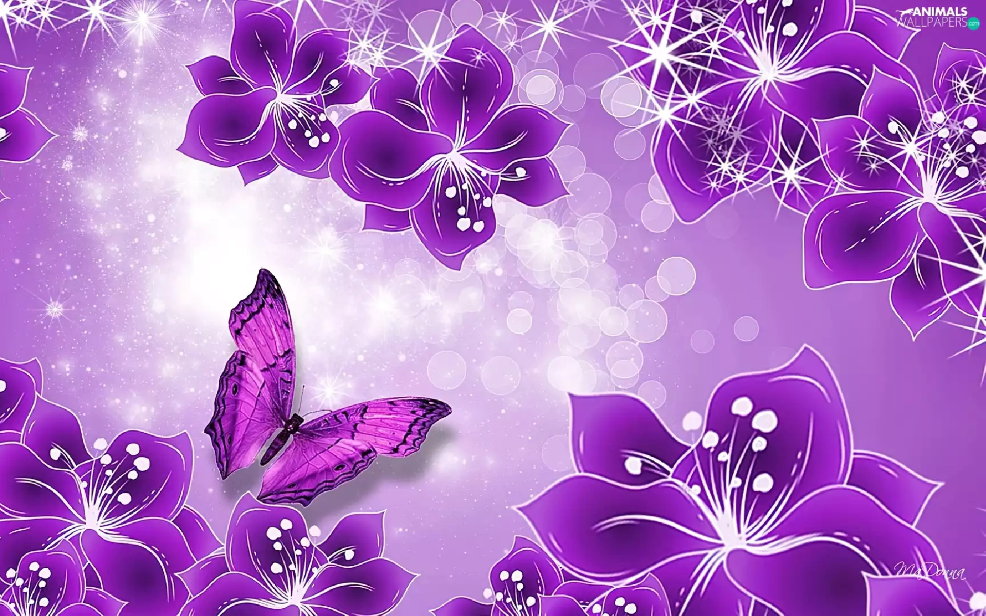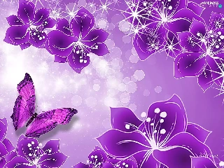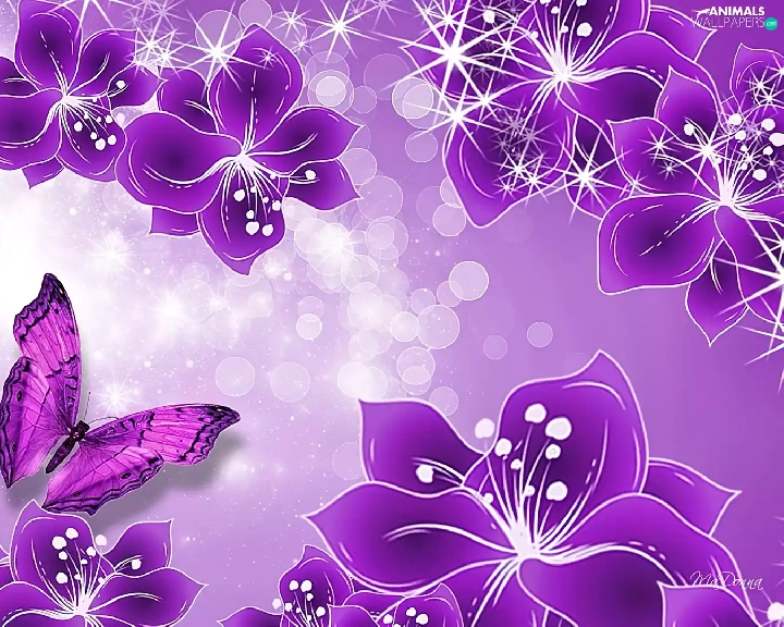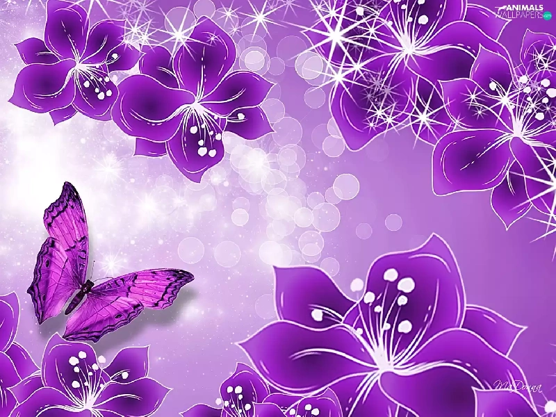 purple, butterfly, Art, Flowers