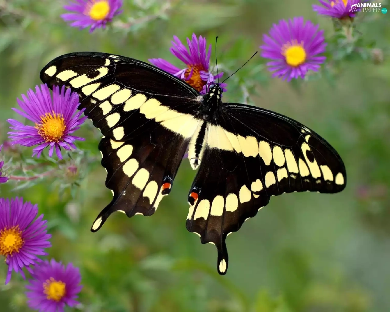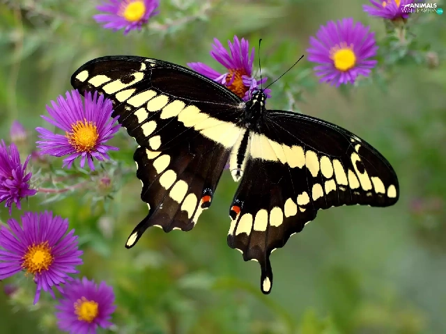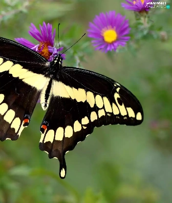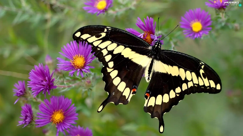 Flowers, butterfly, Purple