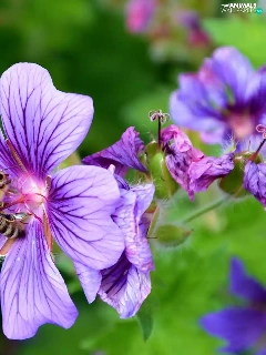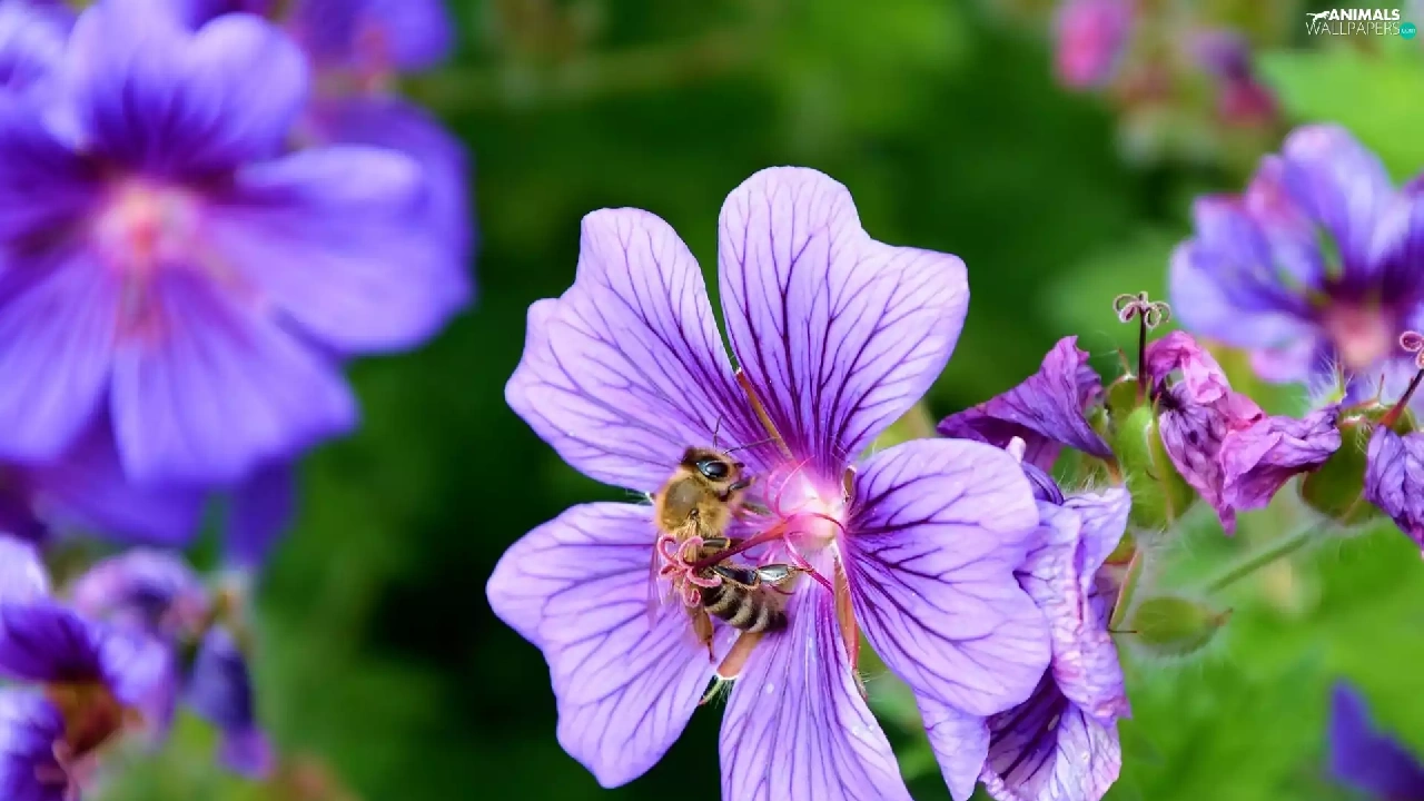 purple, bee, geranium, Flowers
