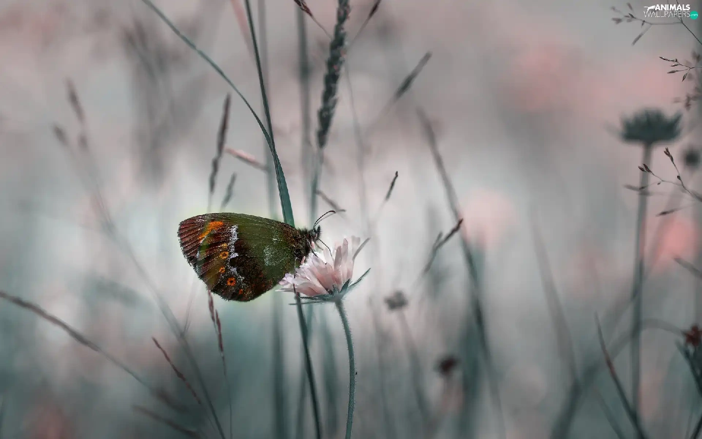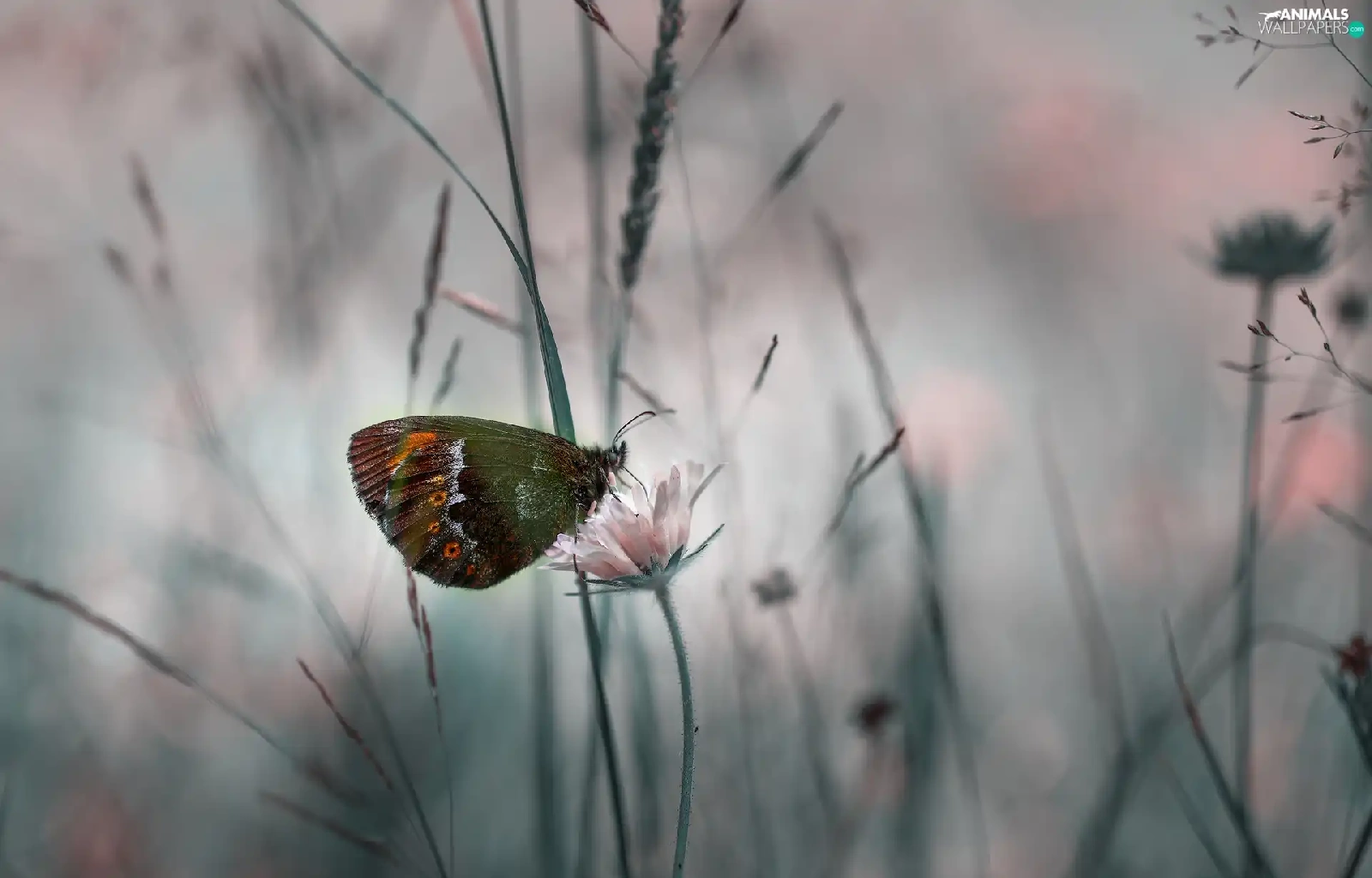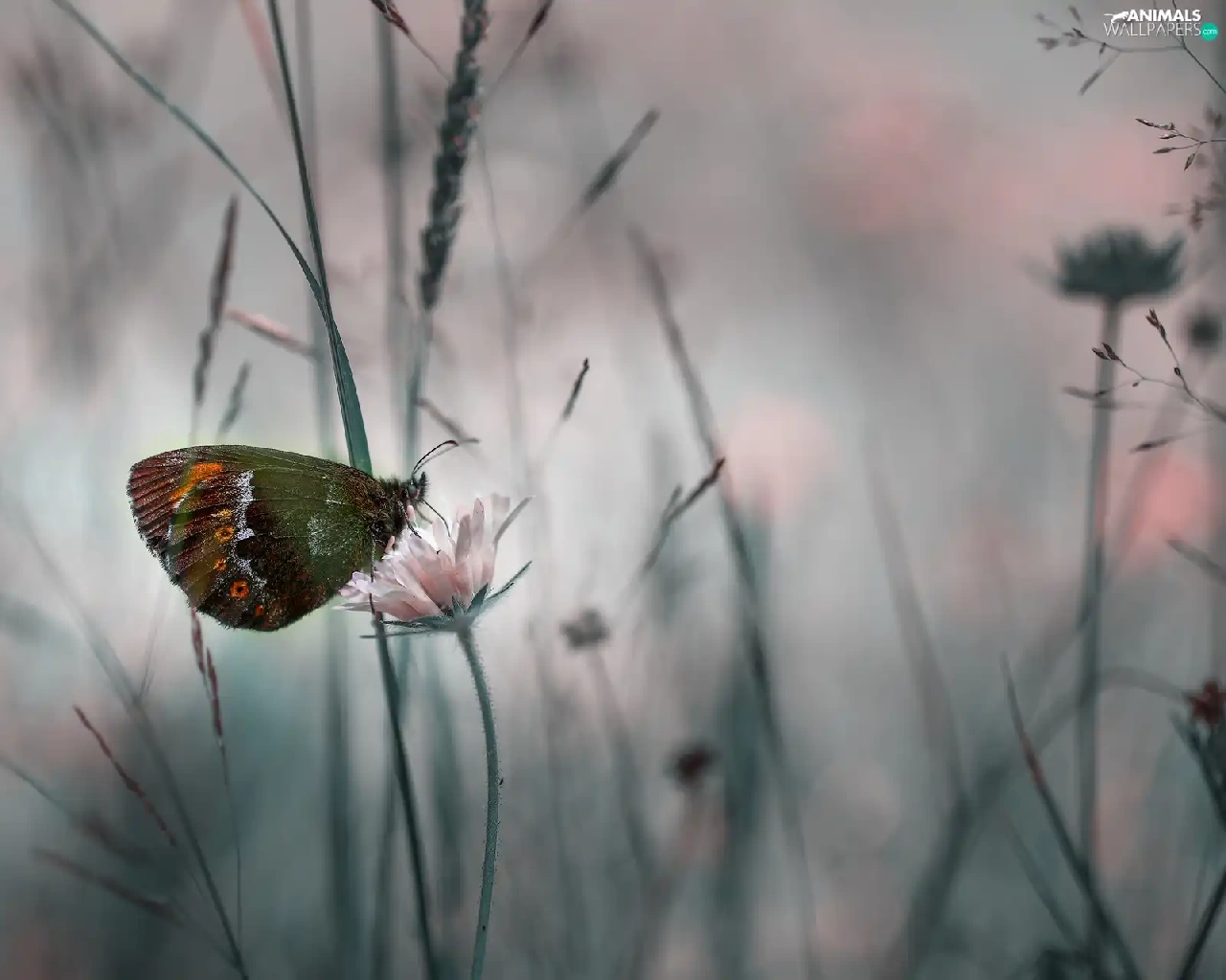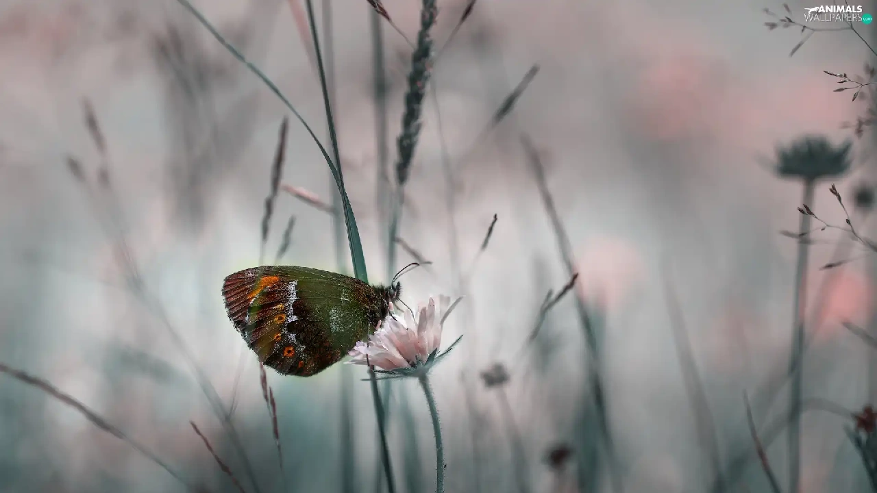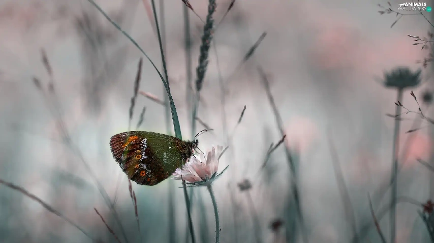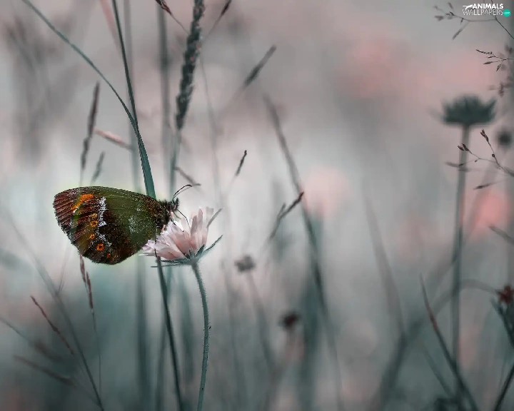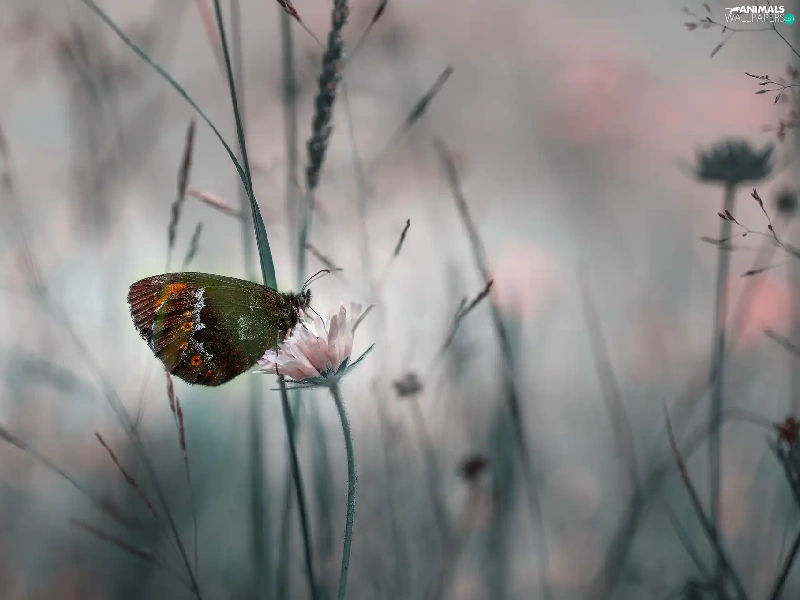 rapprochement, butterfly, Colourfull Flowers