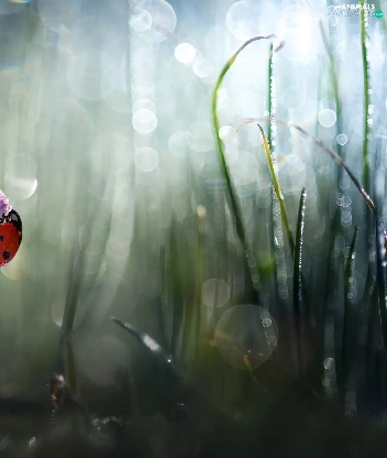 daisy, ladybird, rapprochement, blurry background, grass, Colourfull Flowers