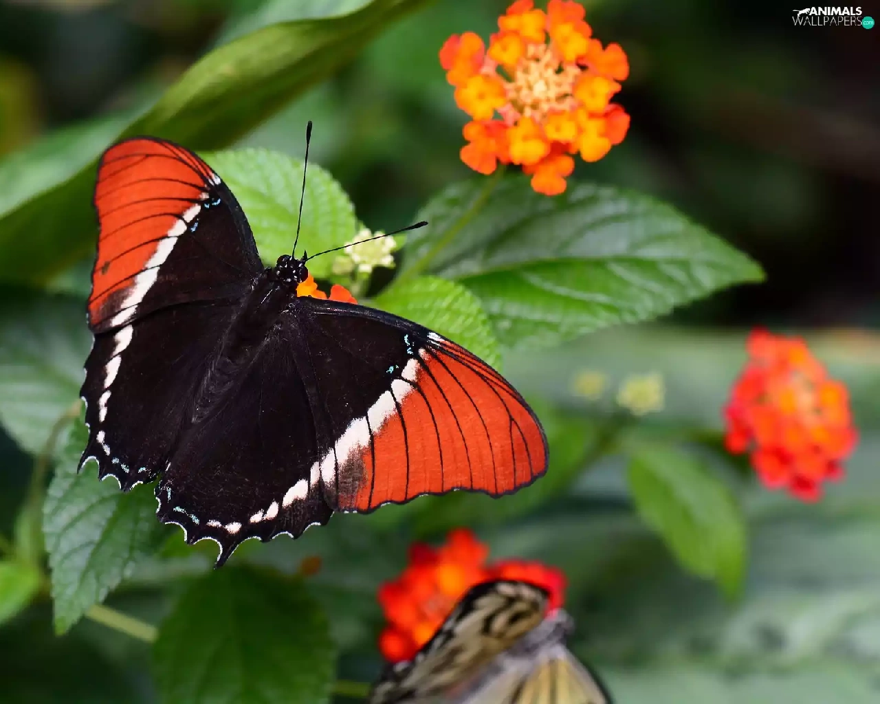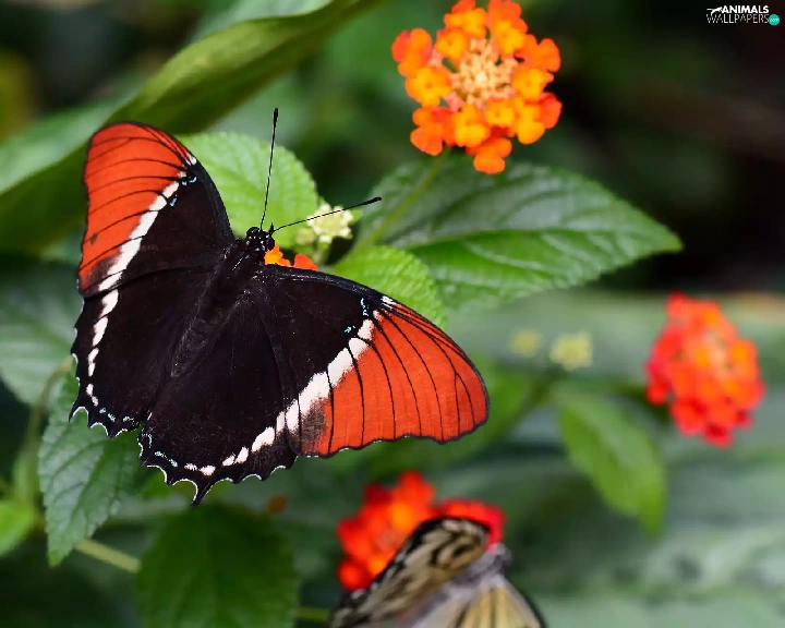 Colourfull Flowers, Red-black, butterfly