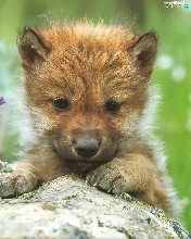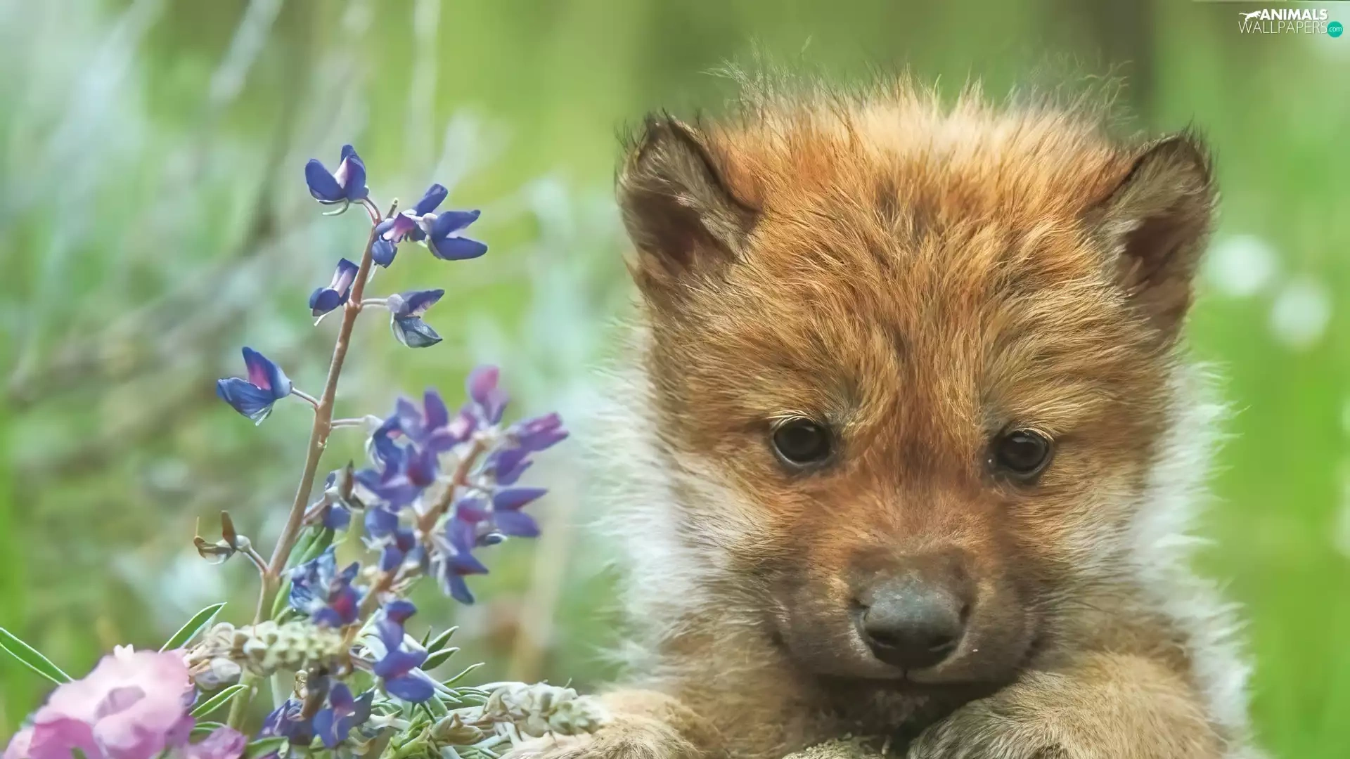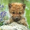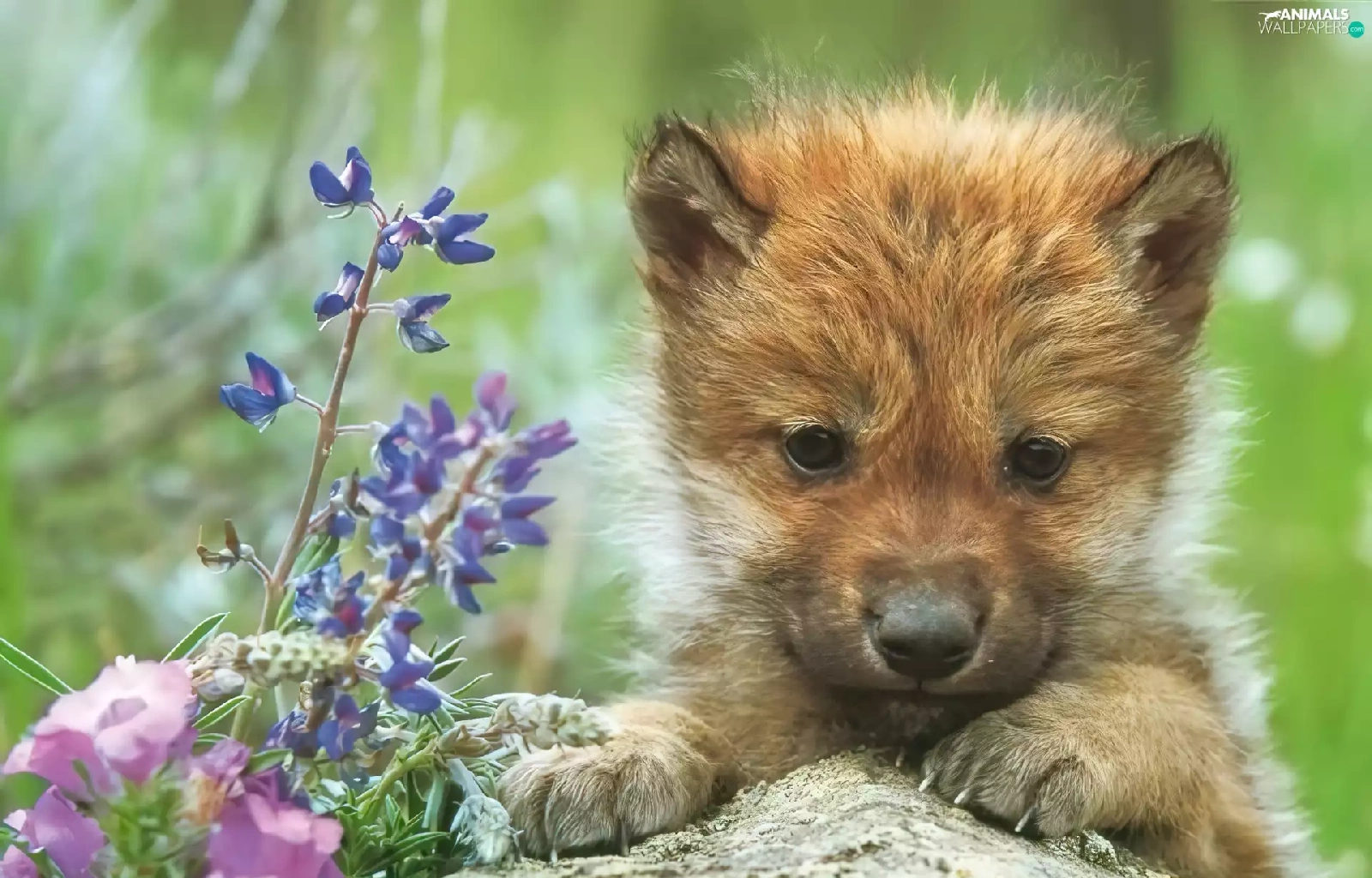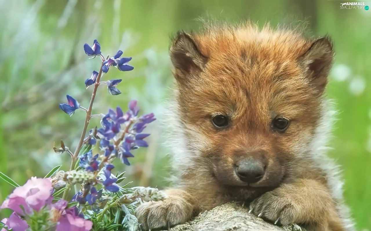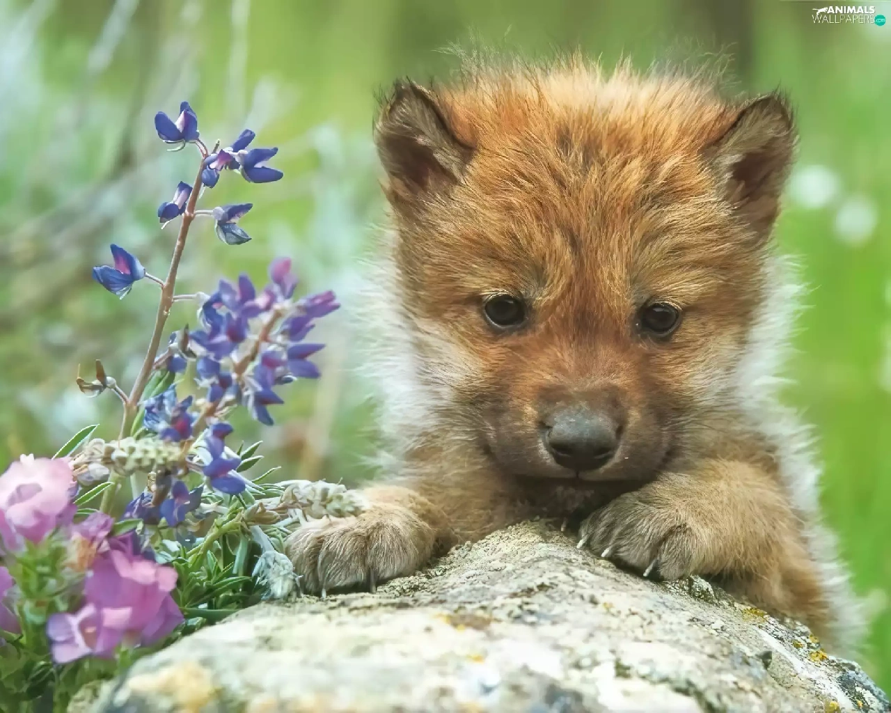 Flowers, wolf, Rocks