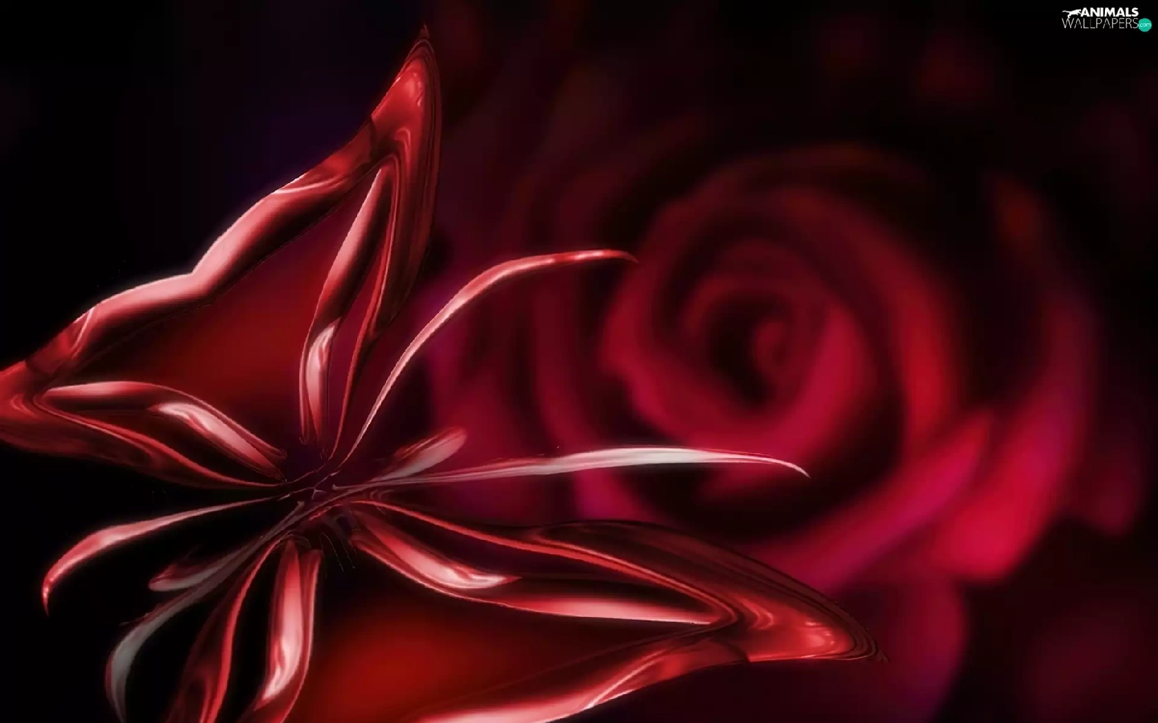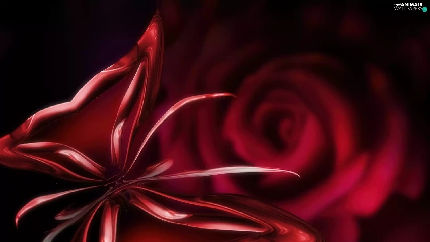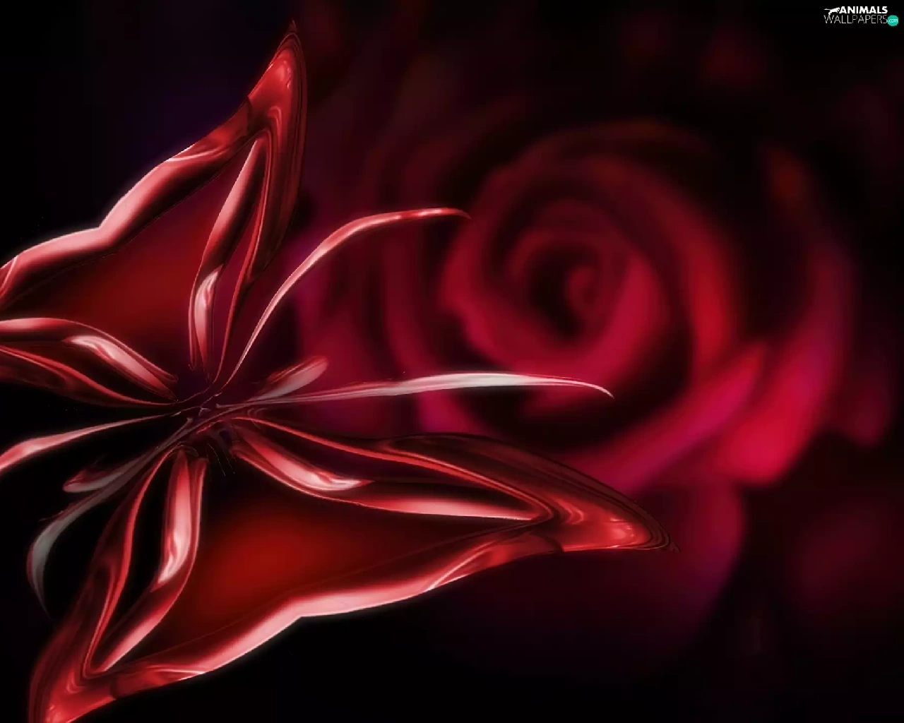 rose, butterfly, Colourfull Flowers