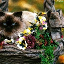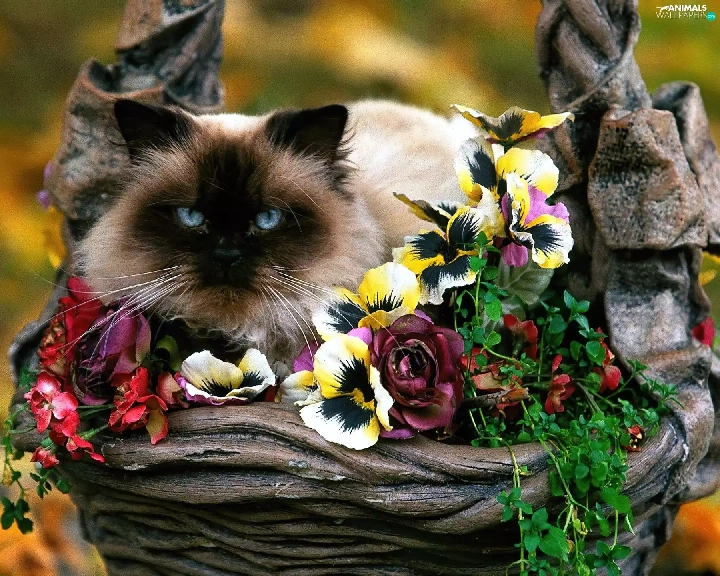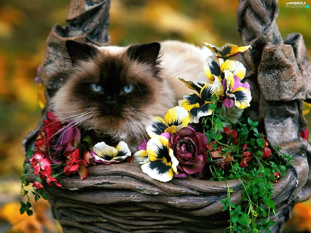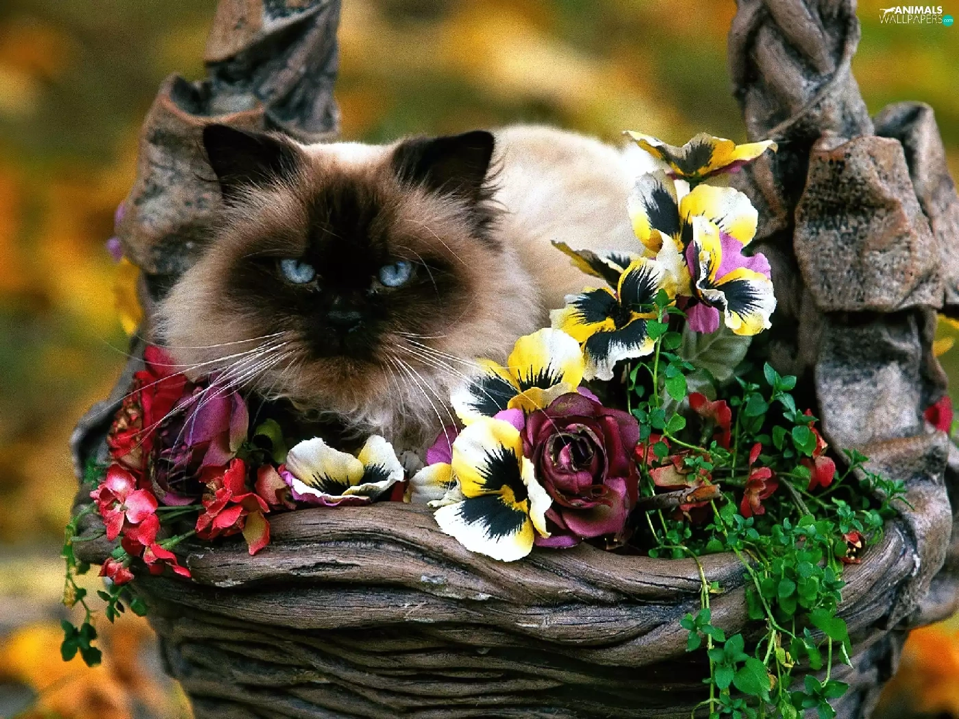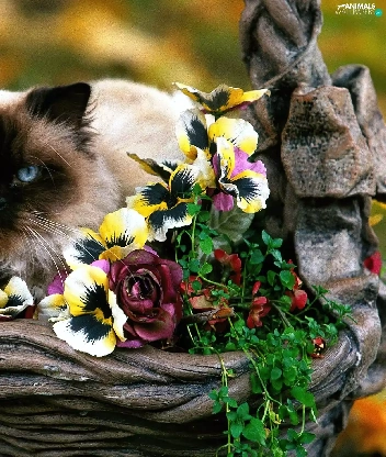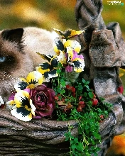 Flowers, kitten, siamese
