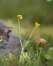 grass, Flowers, small, cat, Gray