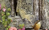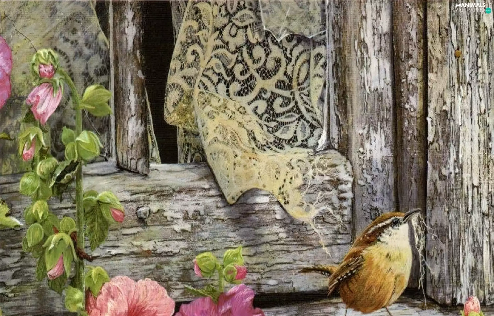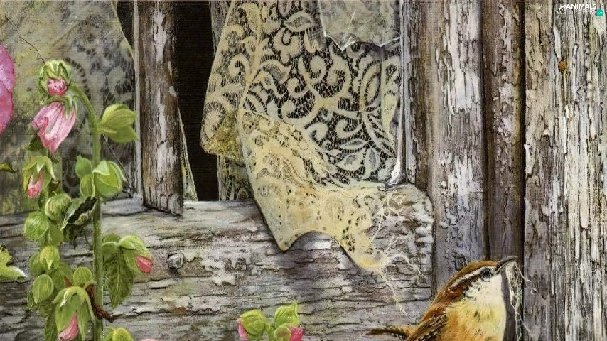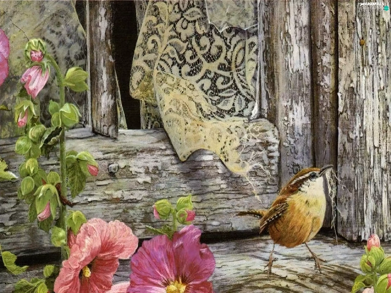 Flowers, Window, sparrow