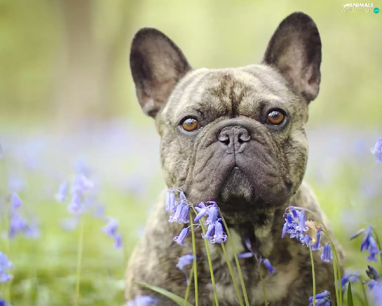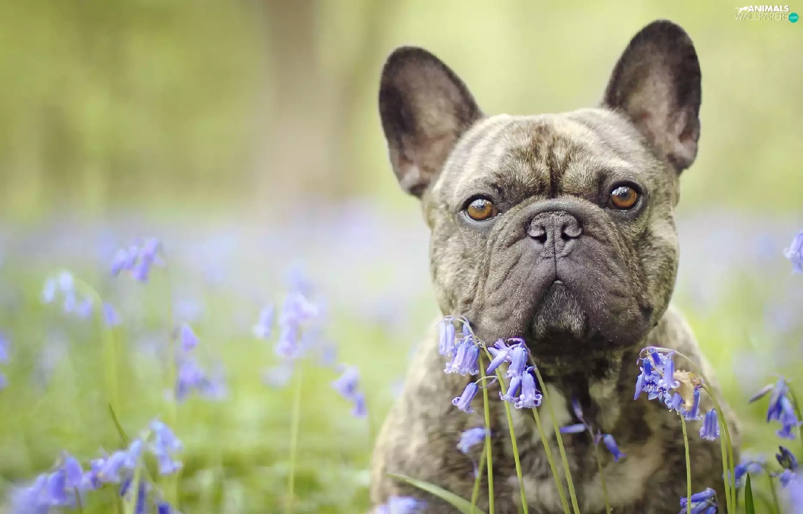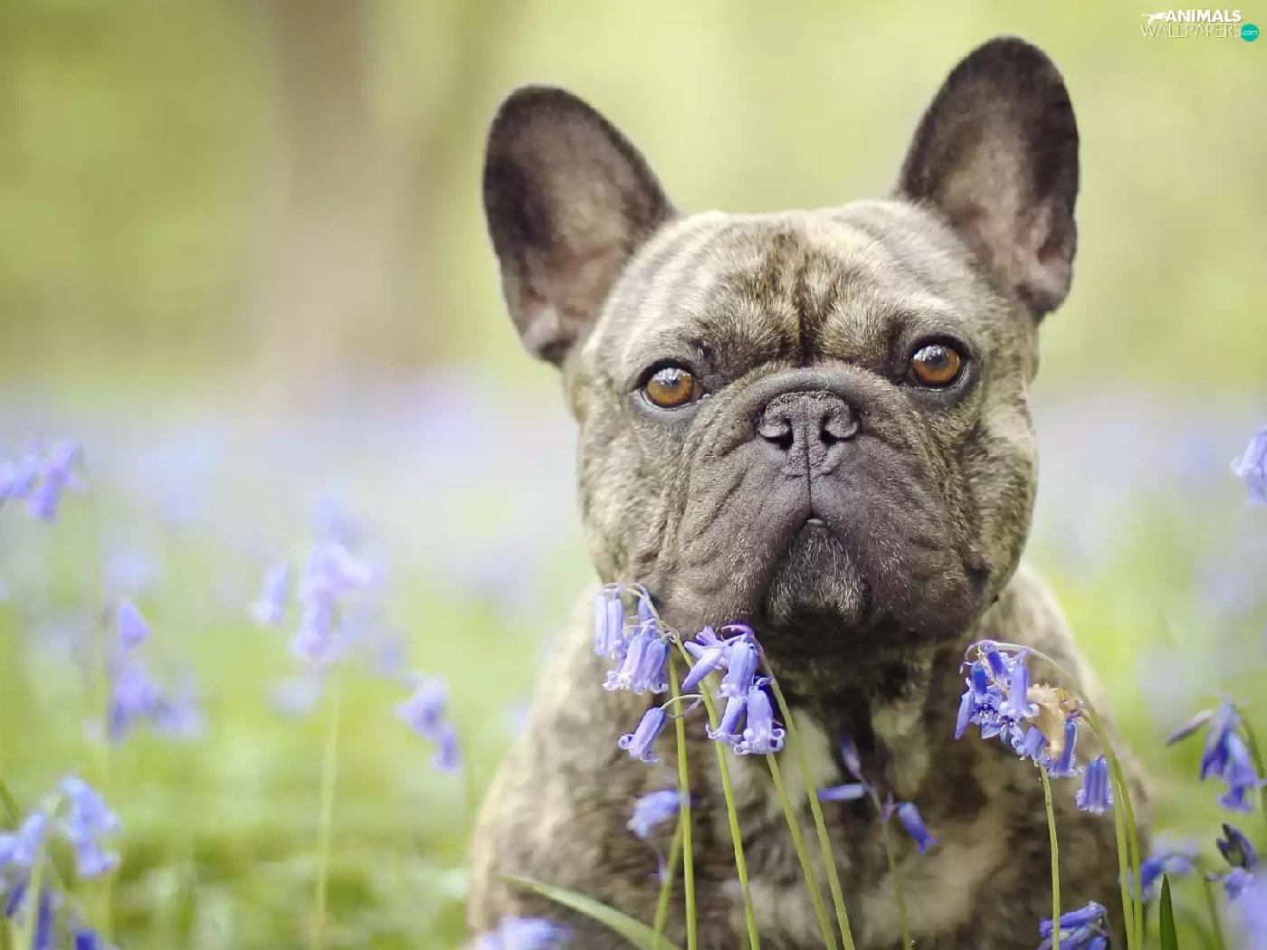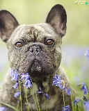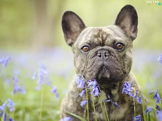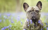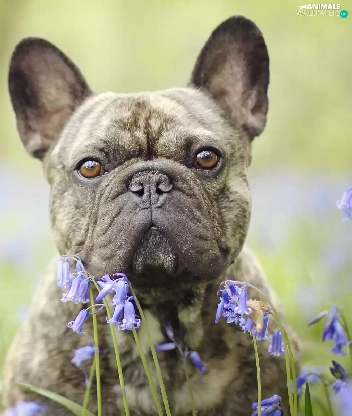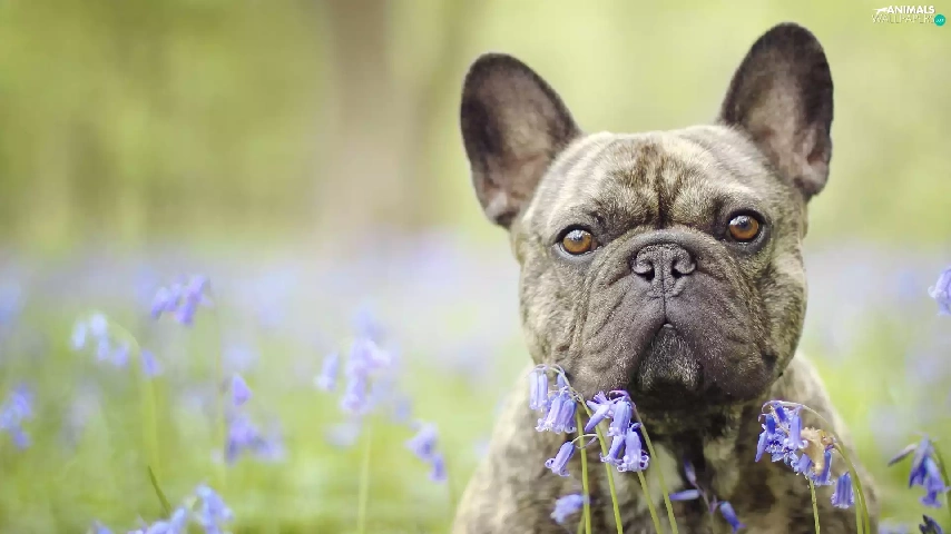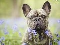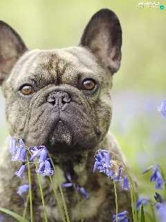dog, Flowers, squill, French Bulldog