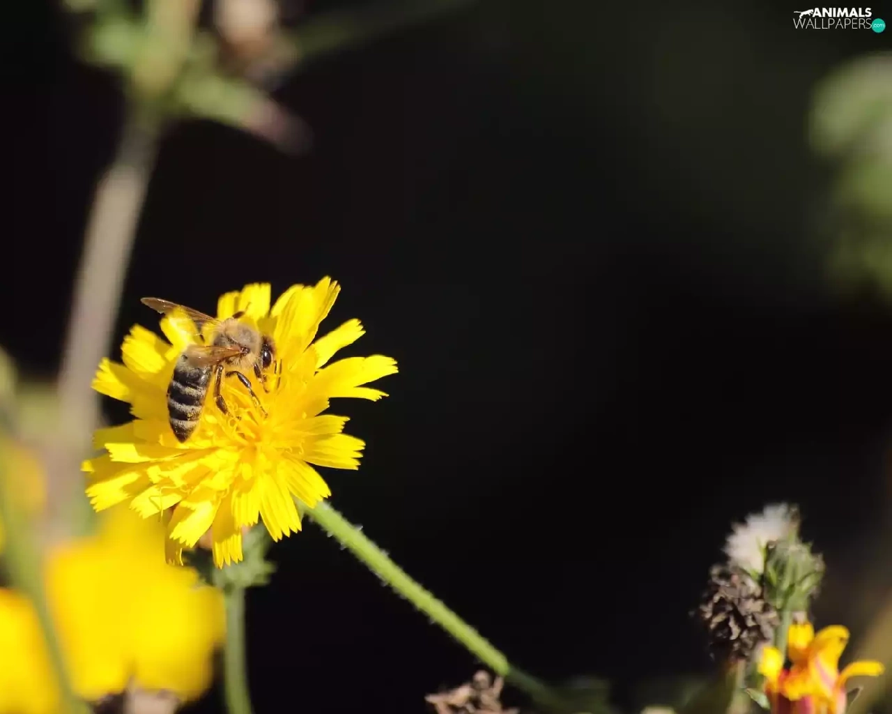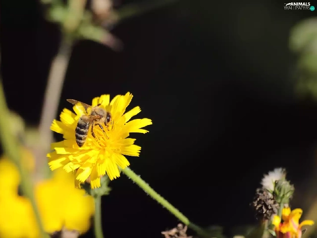summer, bee, Colourfull Flowers