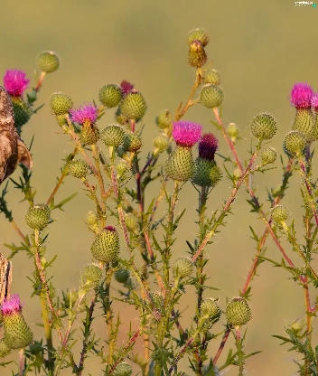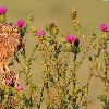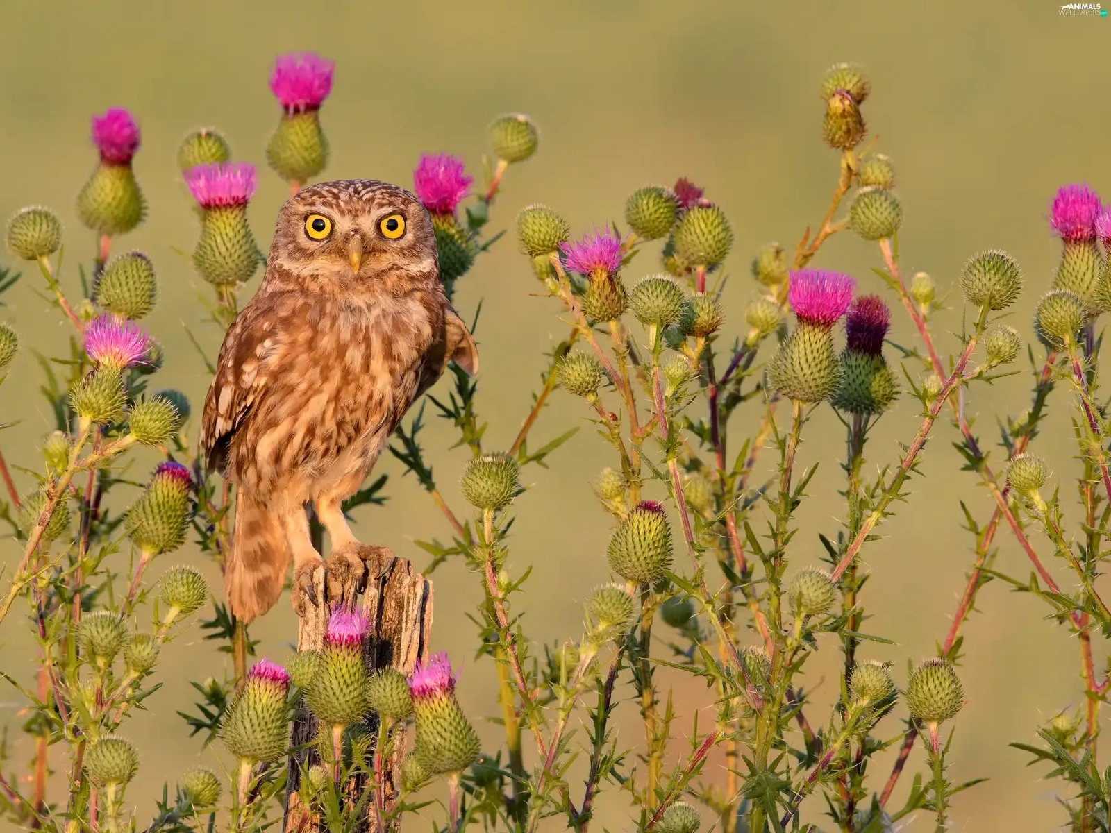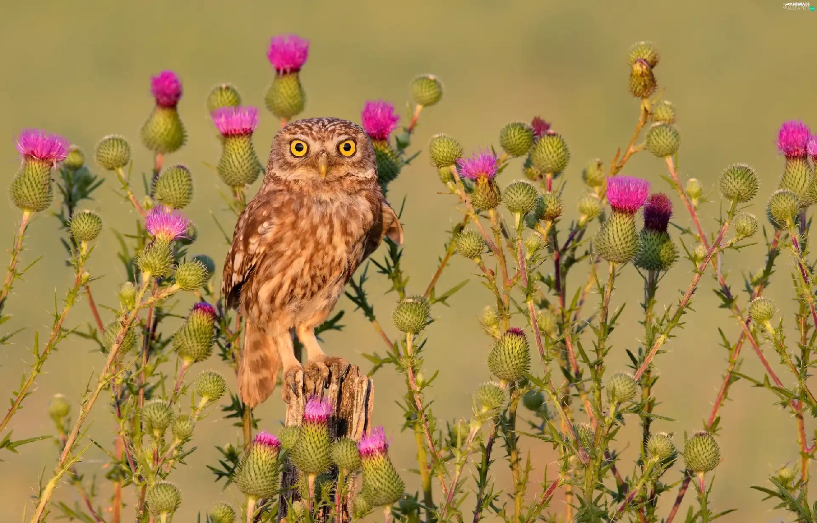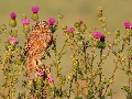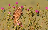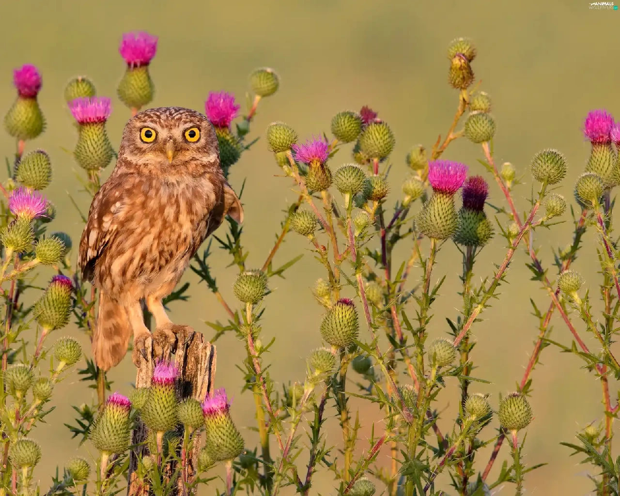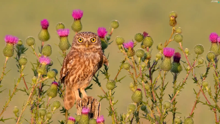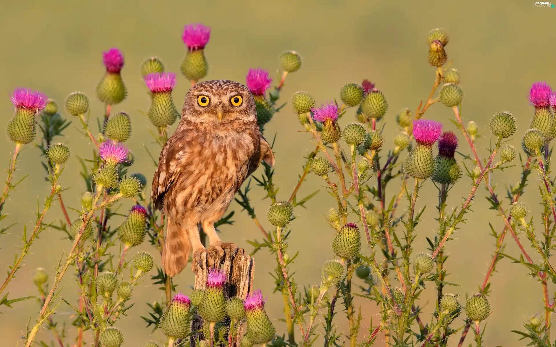 owl, Flowers, teasel, Little Owl