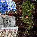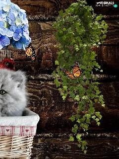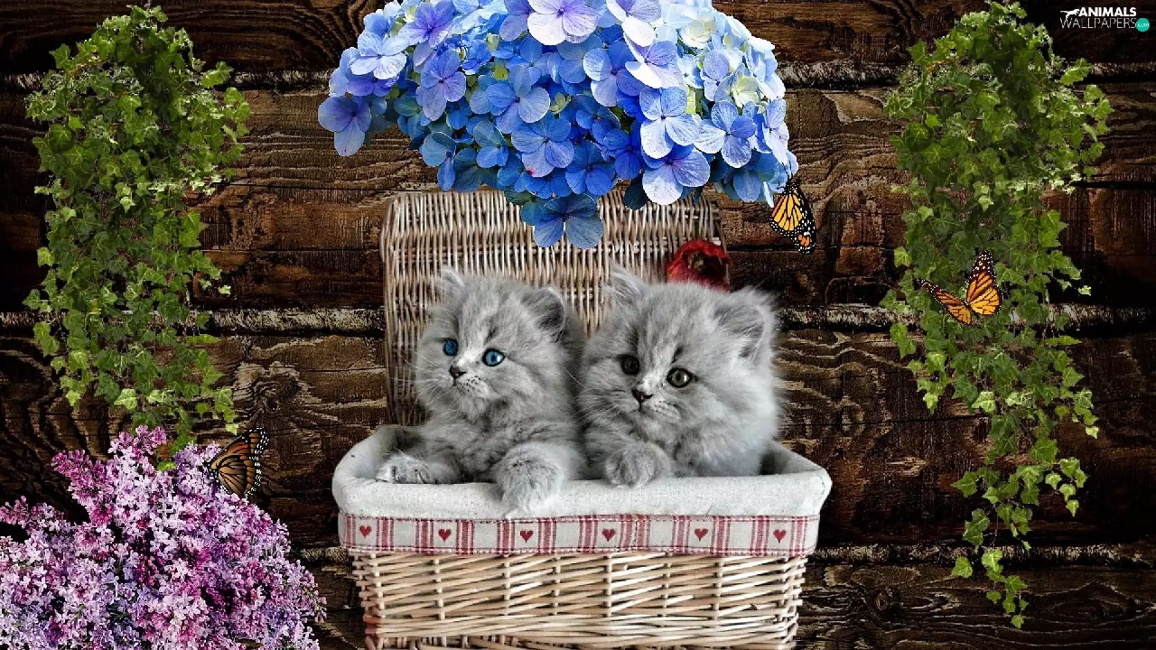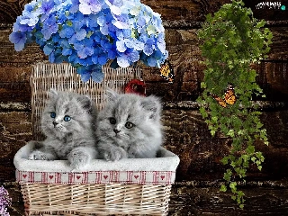 basket, Flowers, tiny, puss, sweet