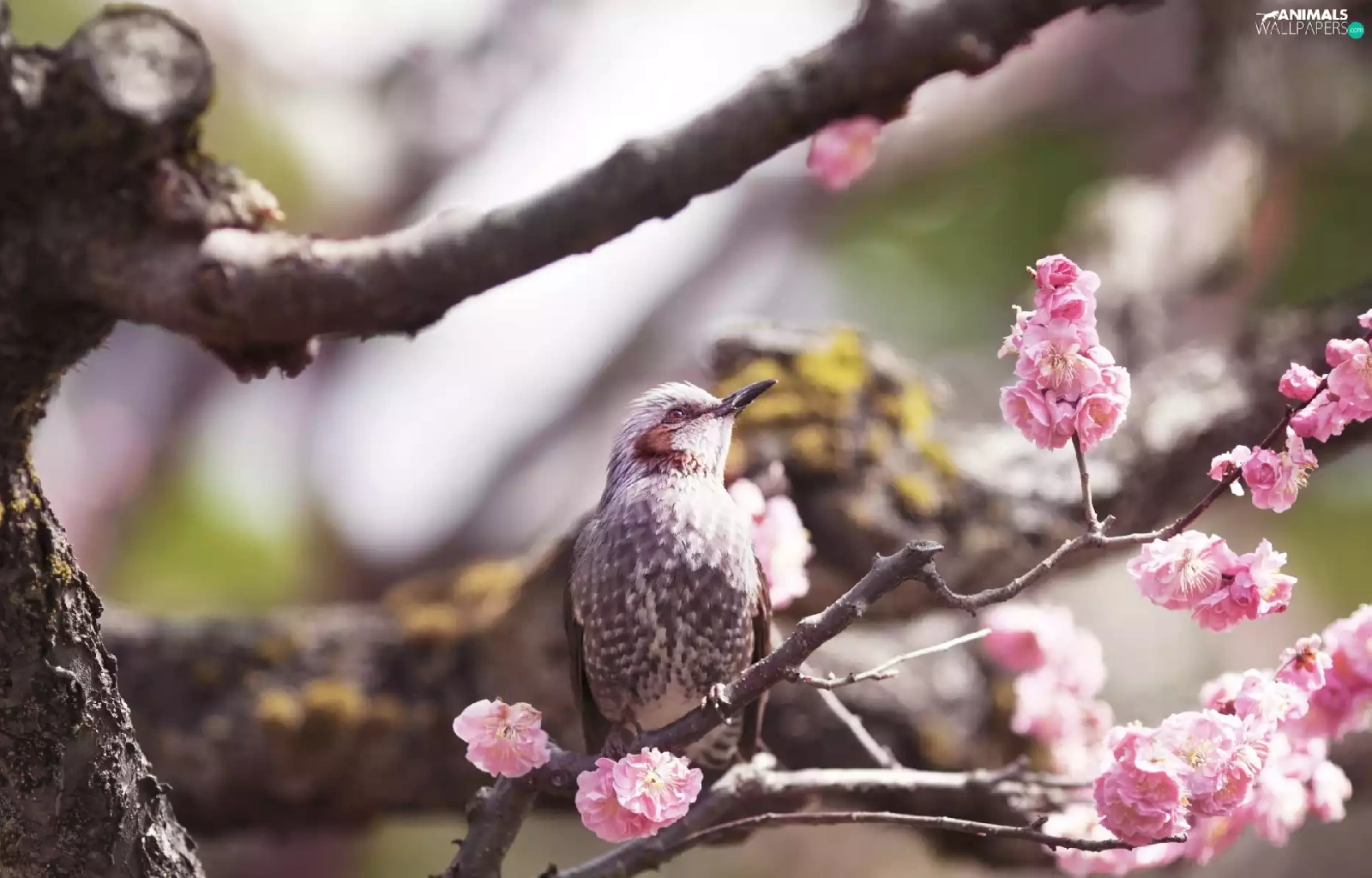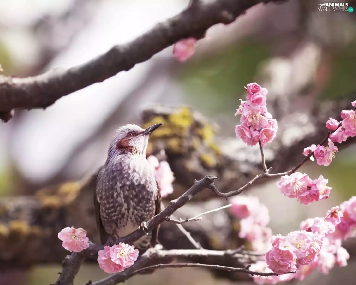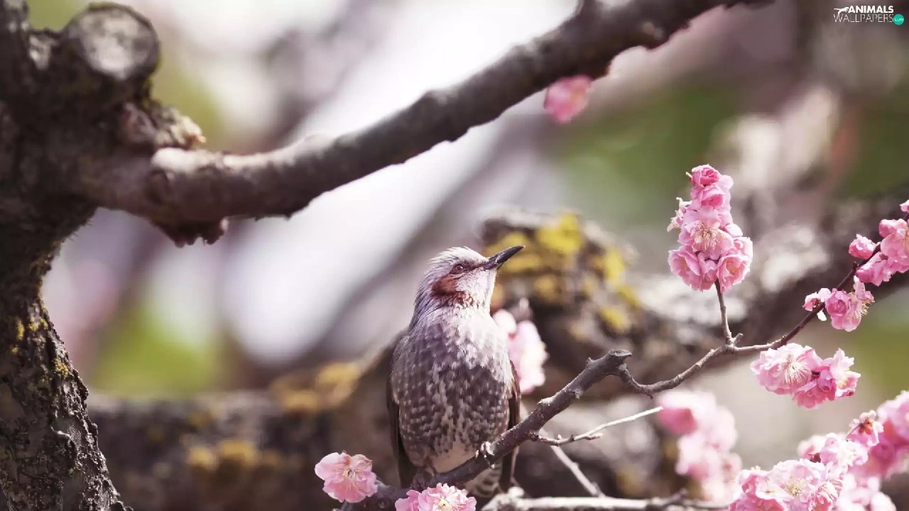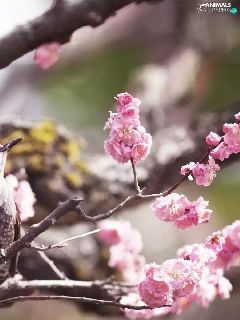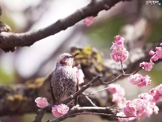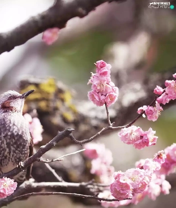 Flowers, Bird, twig