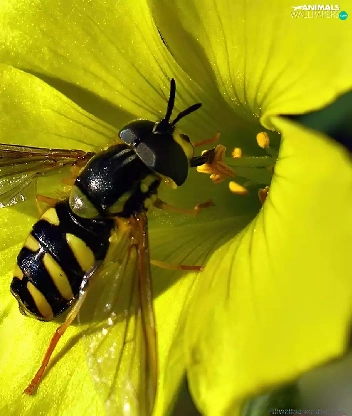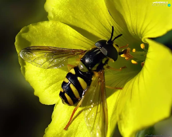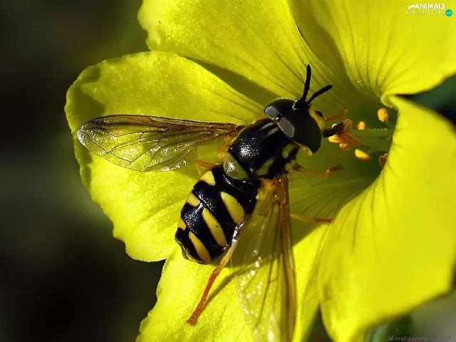 wasp, Yellow, Colourfull Flowers