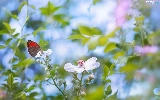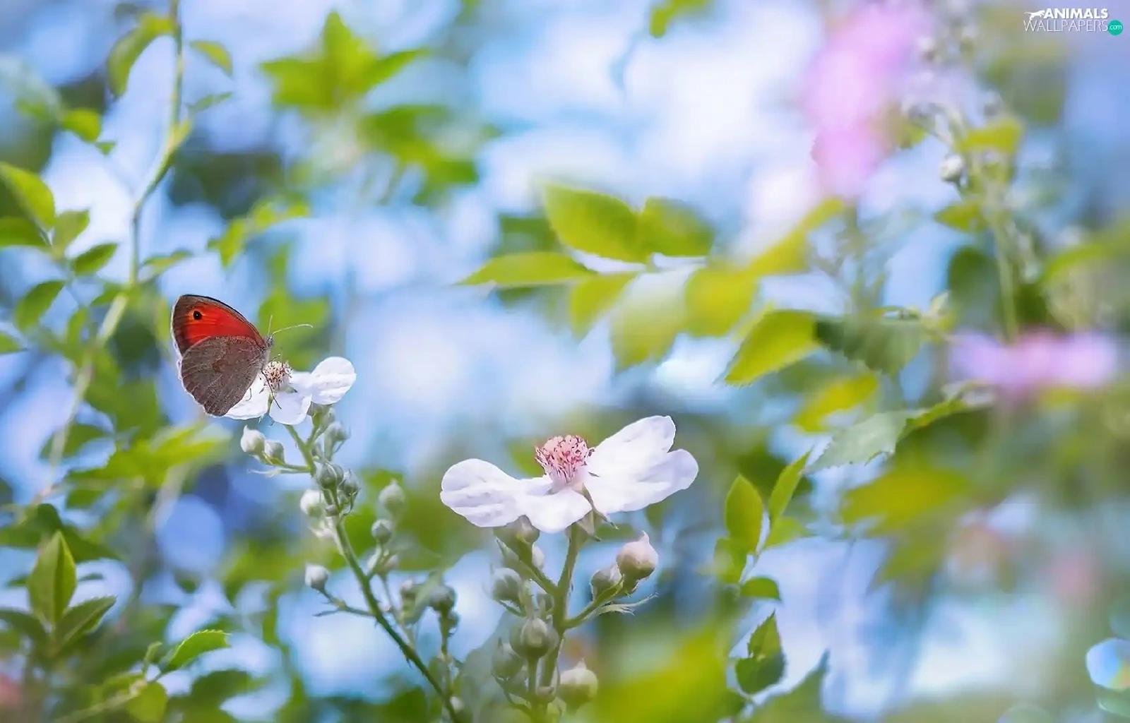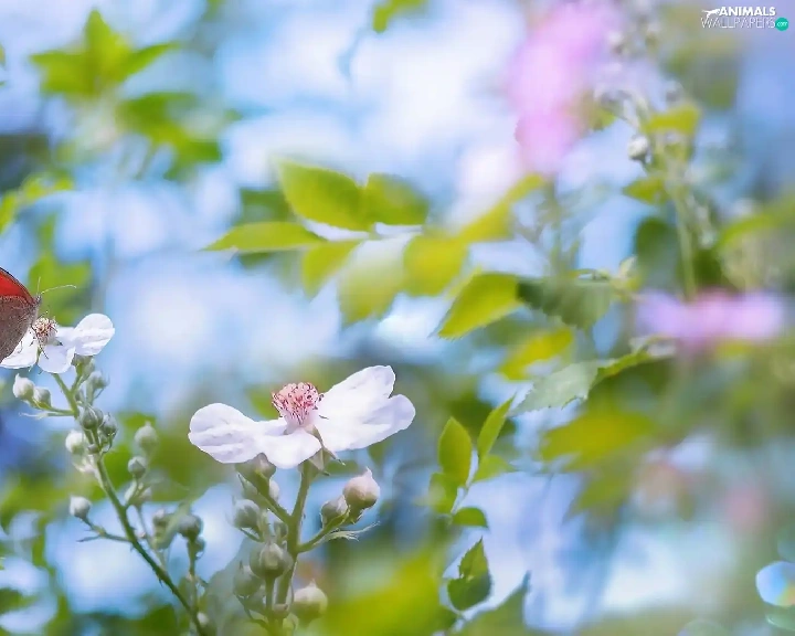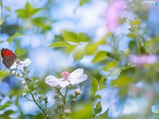 Gatekeeper, blurry background, Flowers, butterfly, White