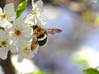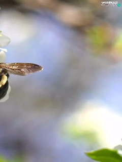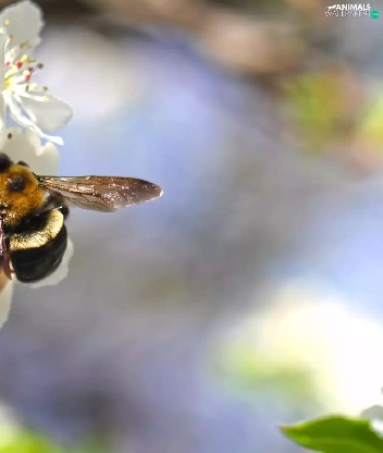 White, kirsch, bee, Flowers