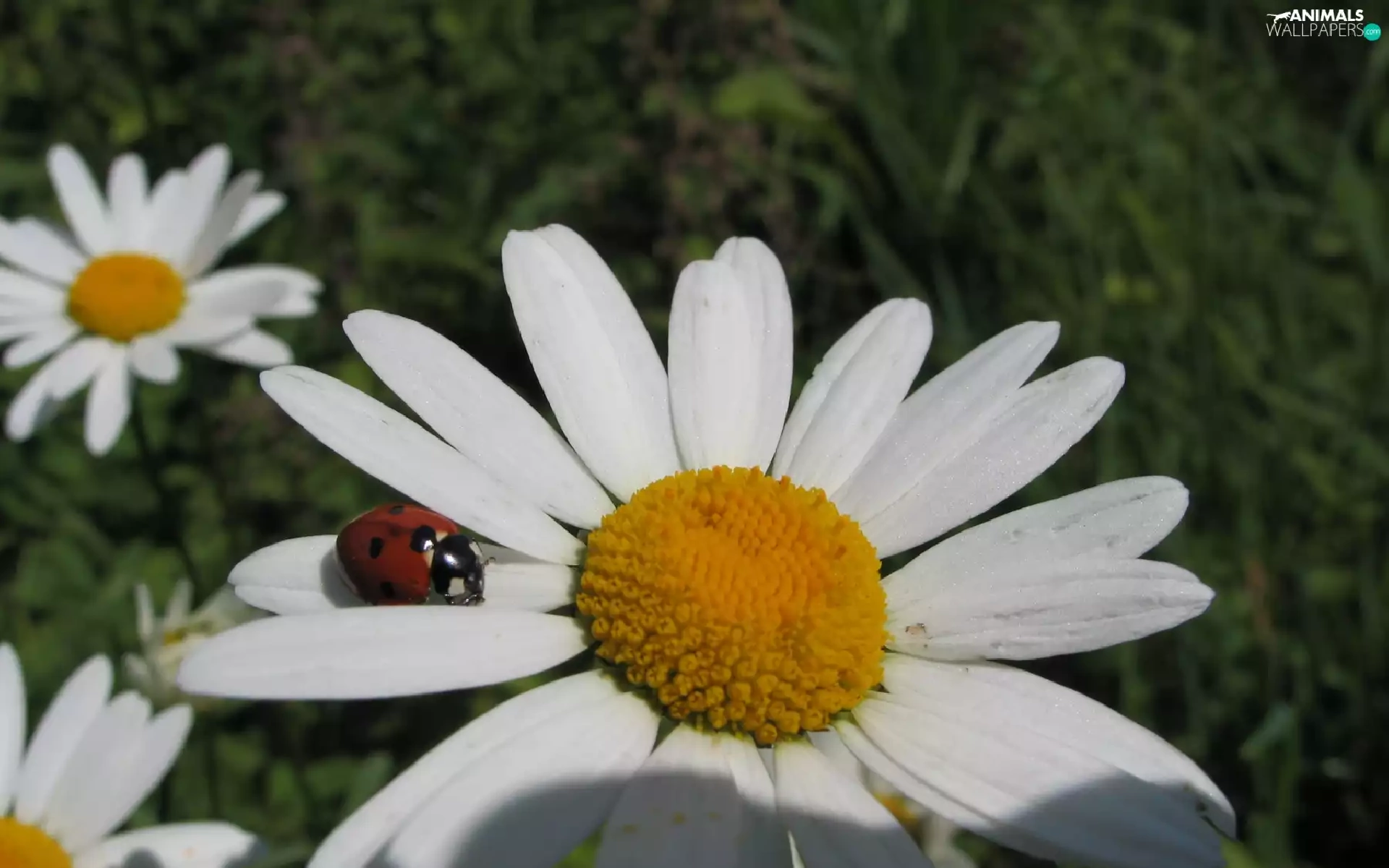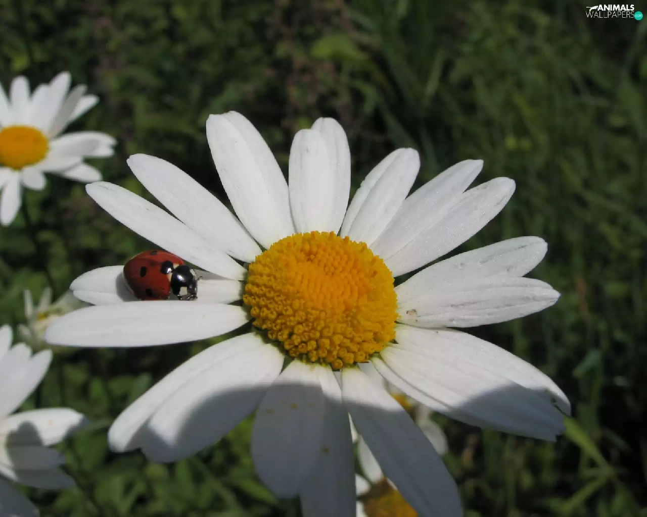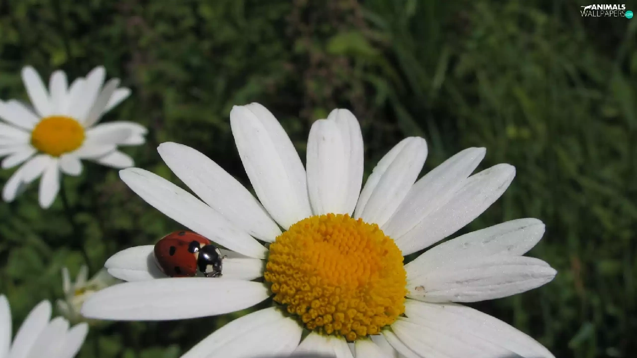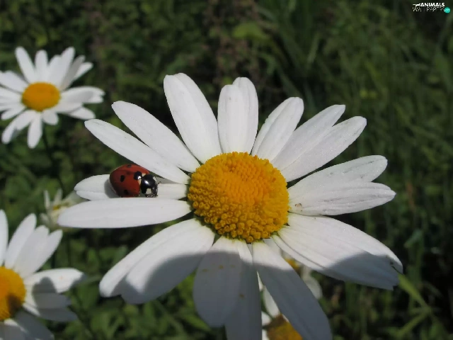 White, ladybird, Garden, Flowers