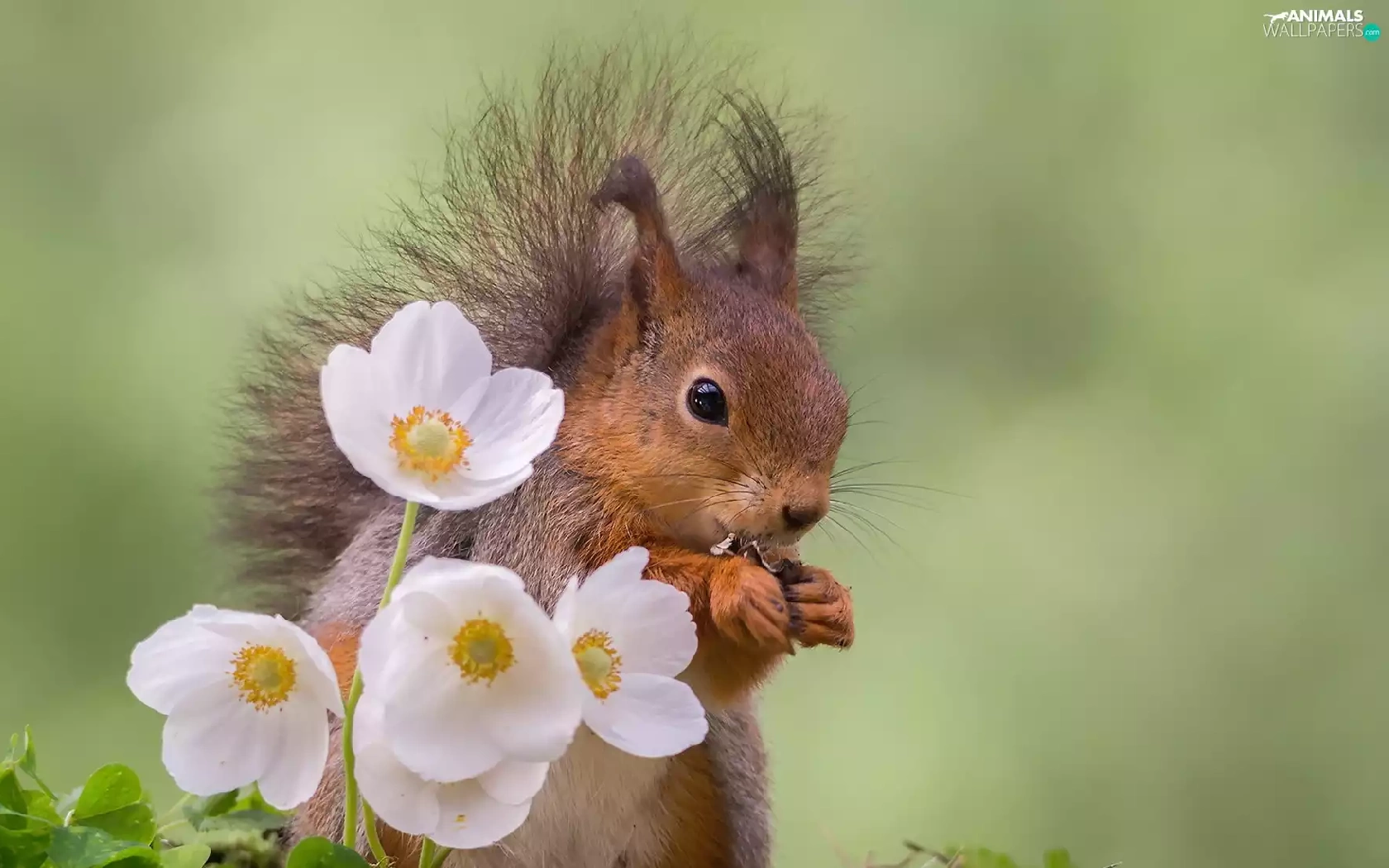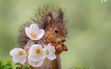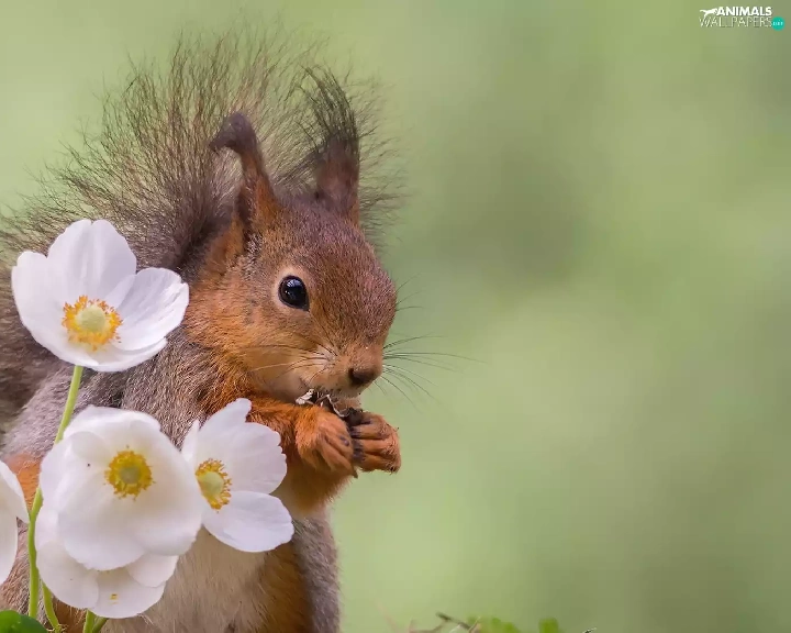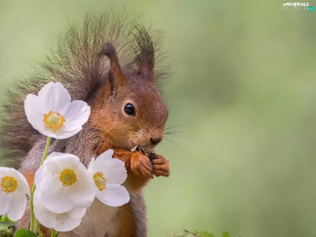 Flowers, squirrel, White