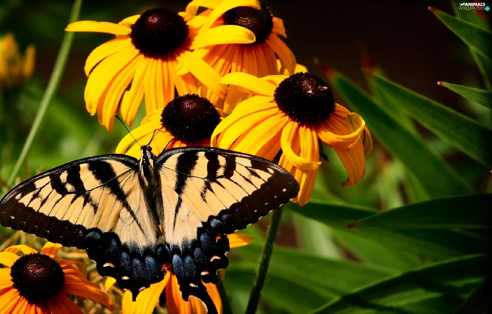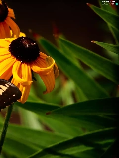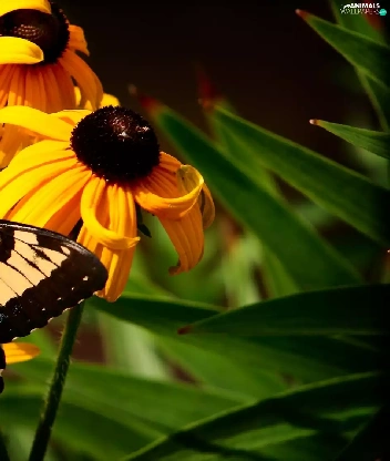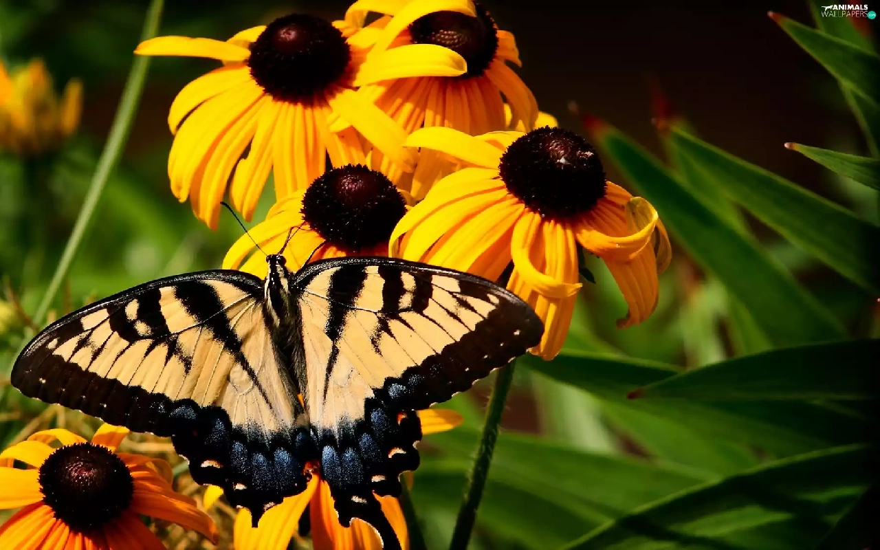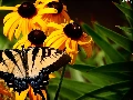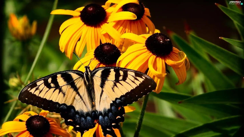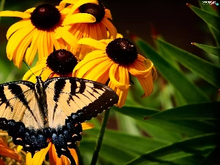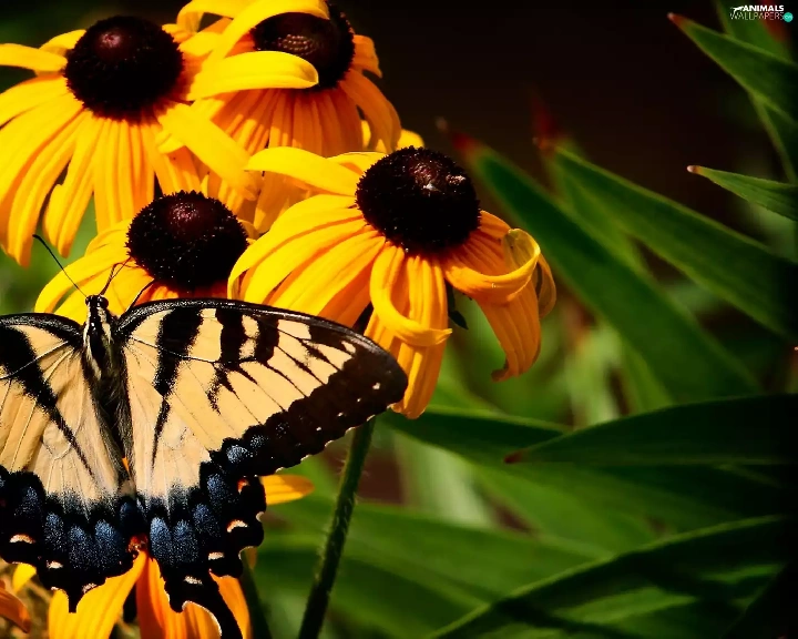 butterfly, Oct Queen, Flowers, Rudbeckia, Yellow