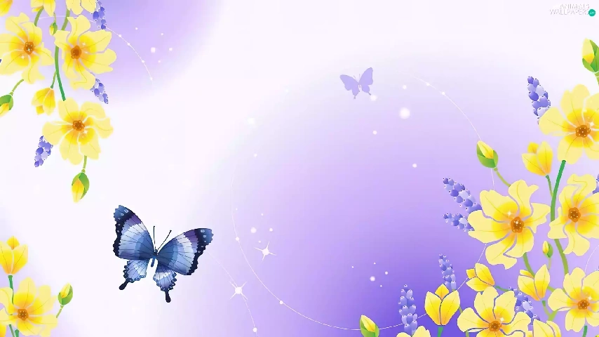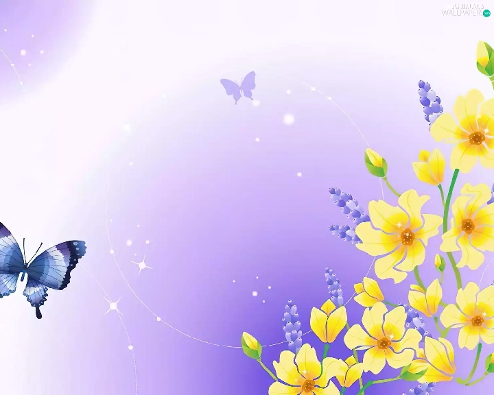 Yellow, butterflies, texture, Flowers