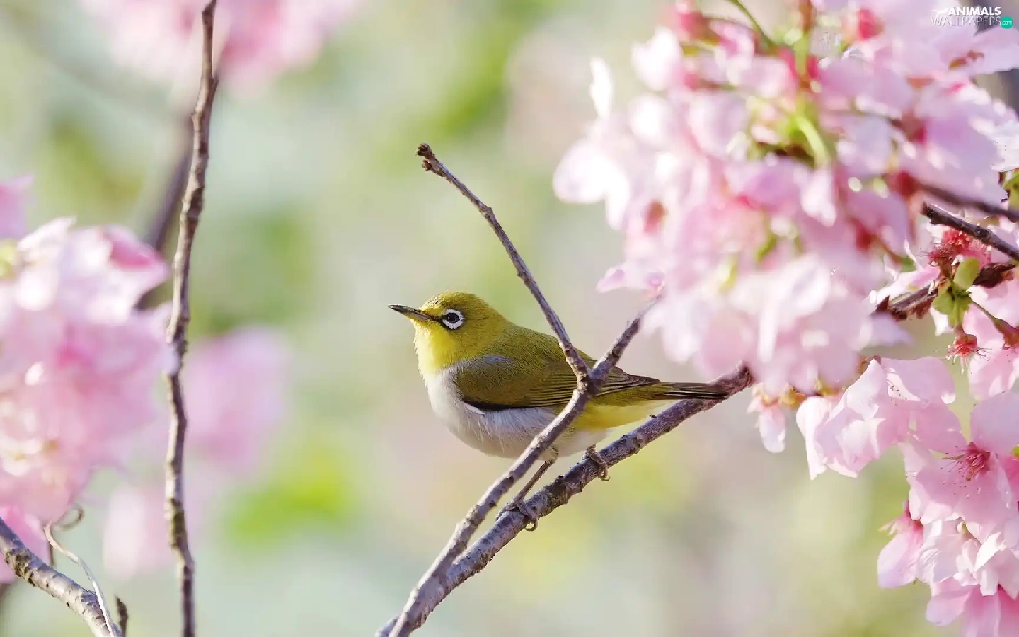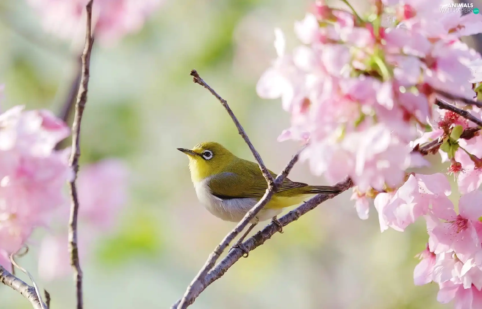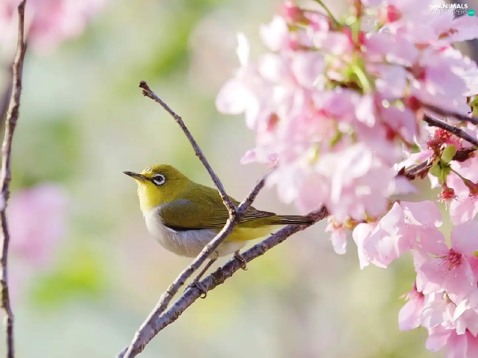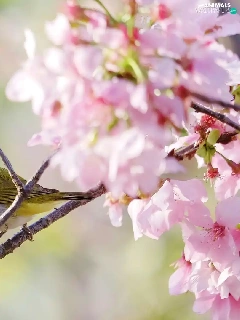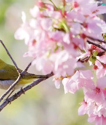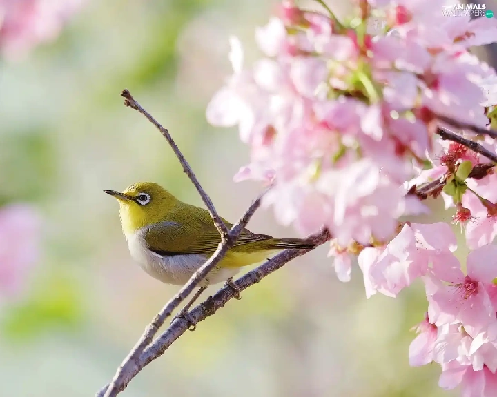 Twigs, Flowers, Zosterops, Flourished, Bird