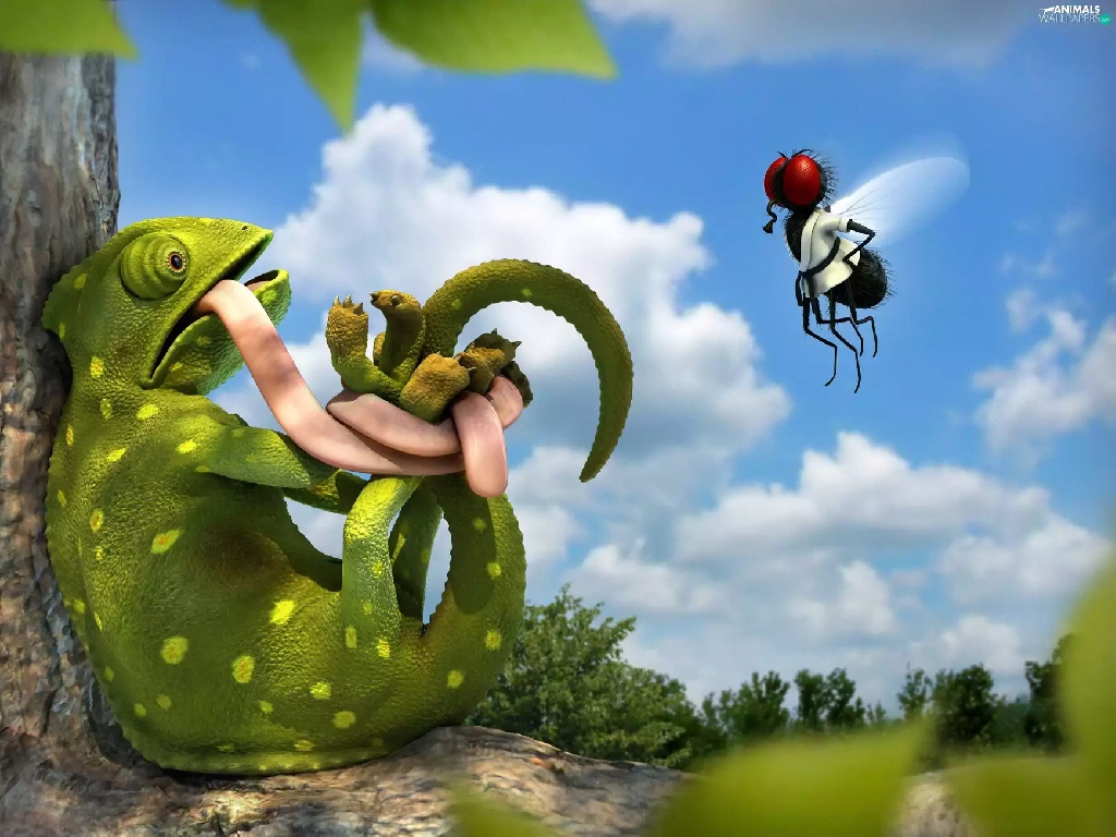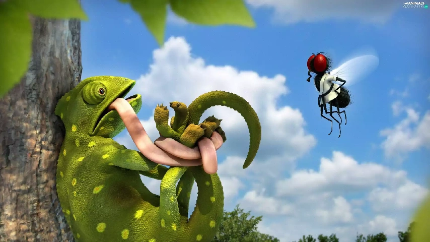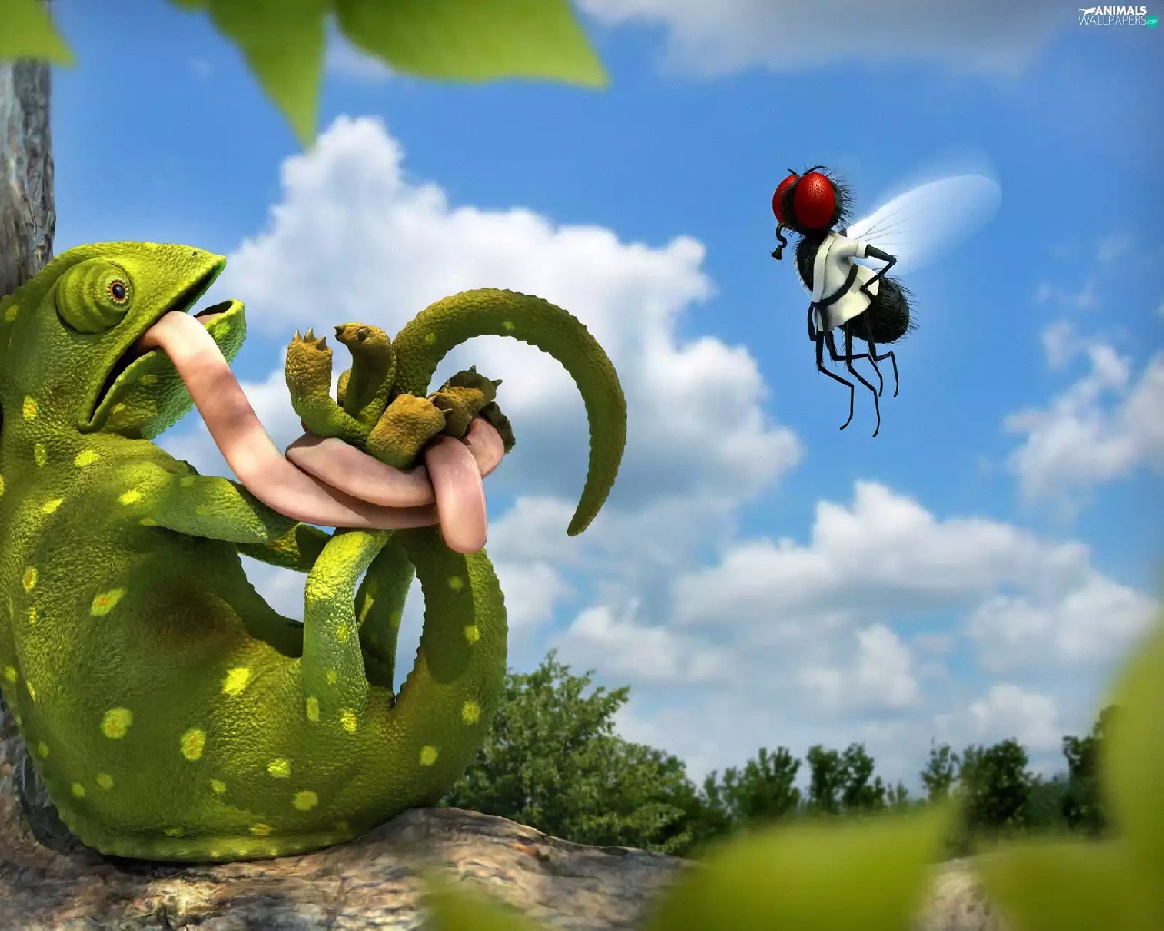 fly, embarrassed, Cameleon