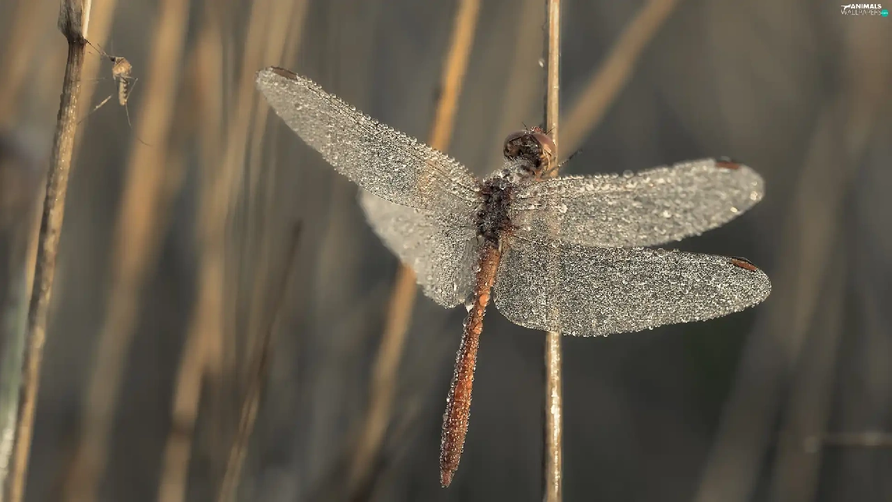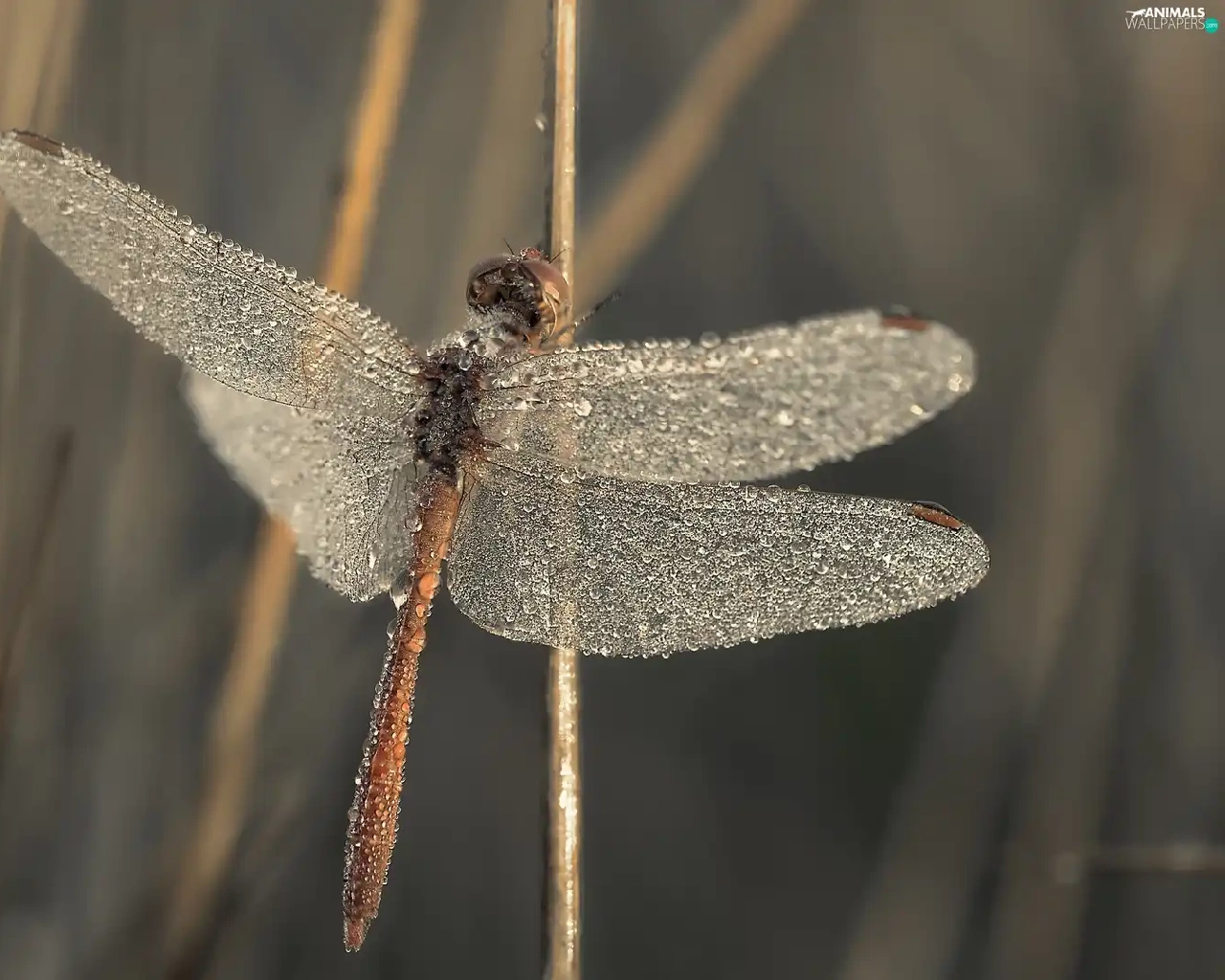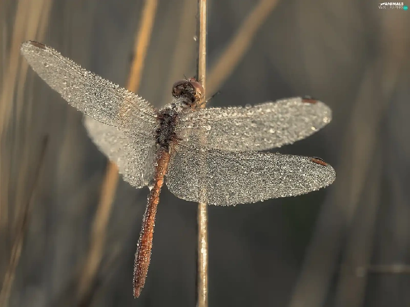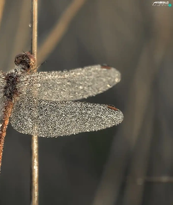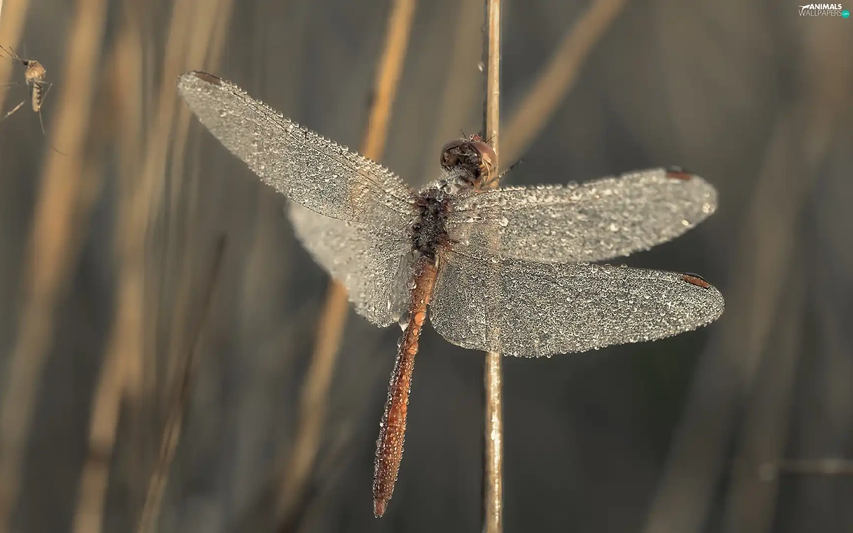 dragon-fly, wings, drops, wet