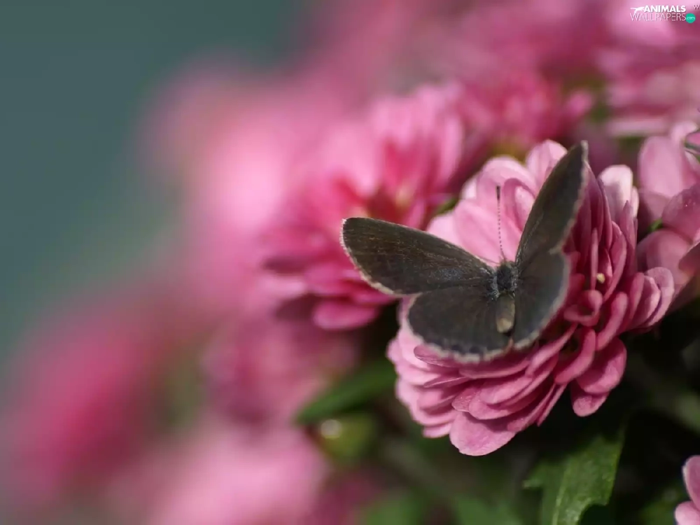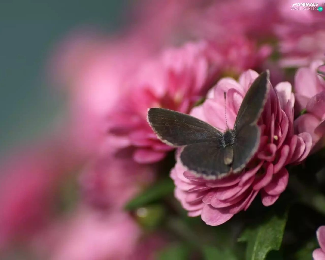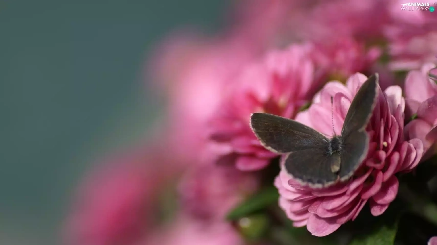 deep, focus, Flowers, butterfly, Pink