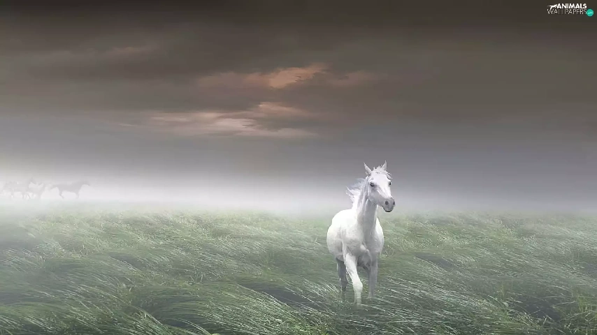Fog, White, Horse