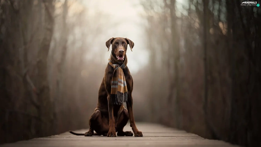 dog, Scarf, footbridge, Doberman