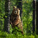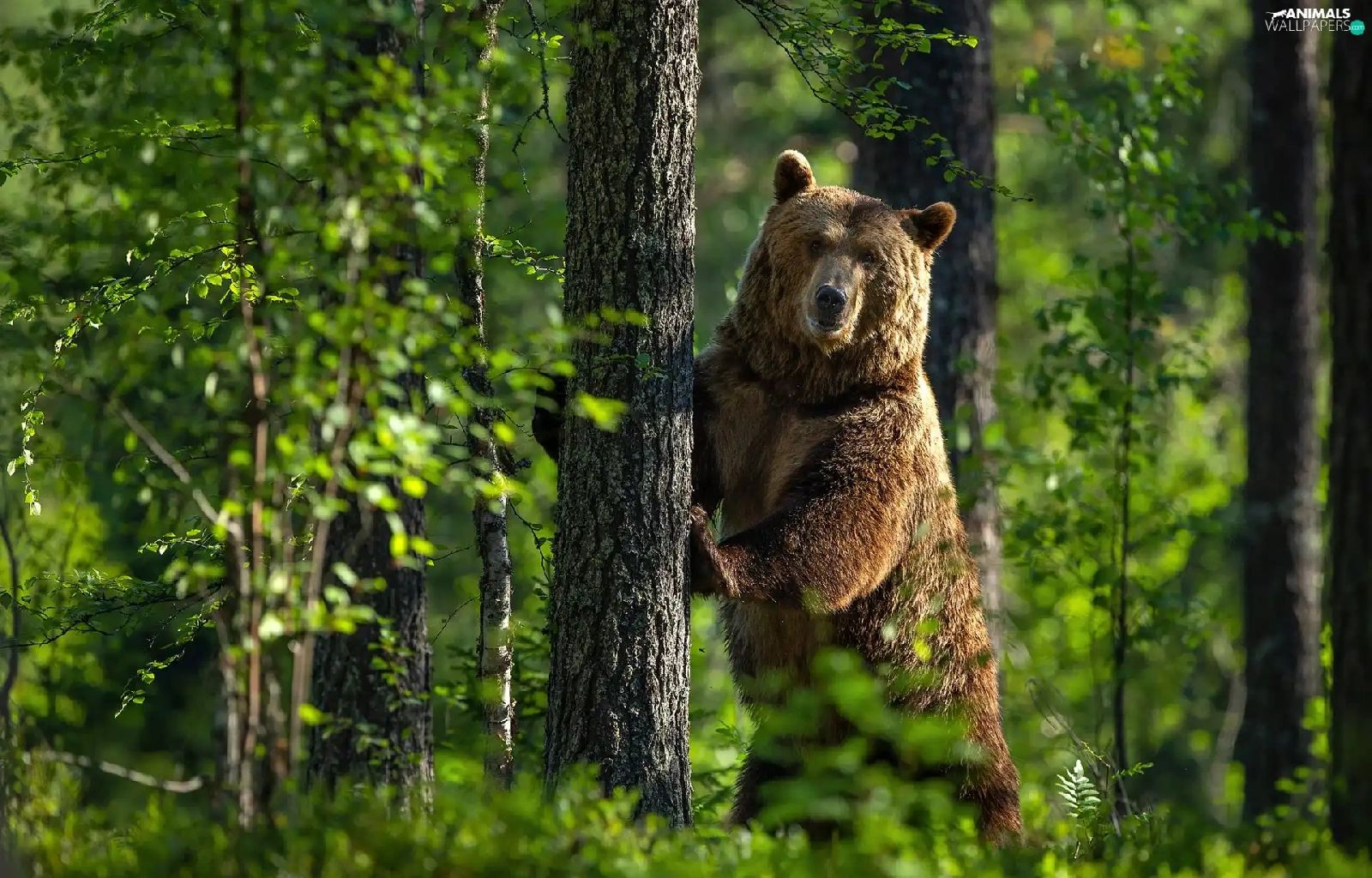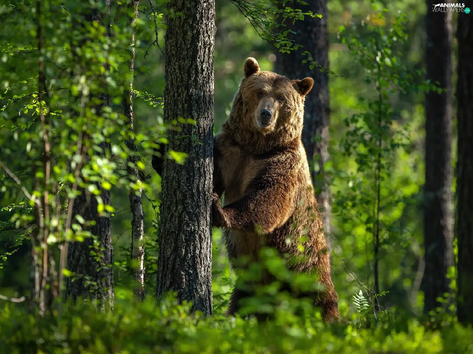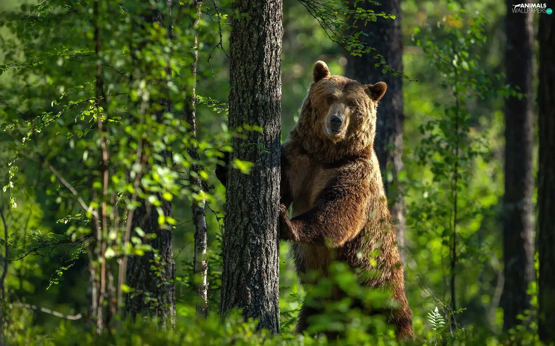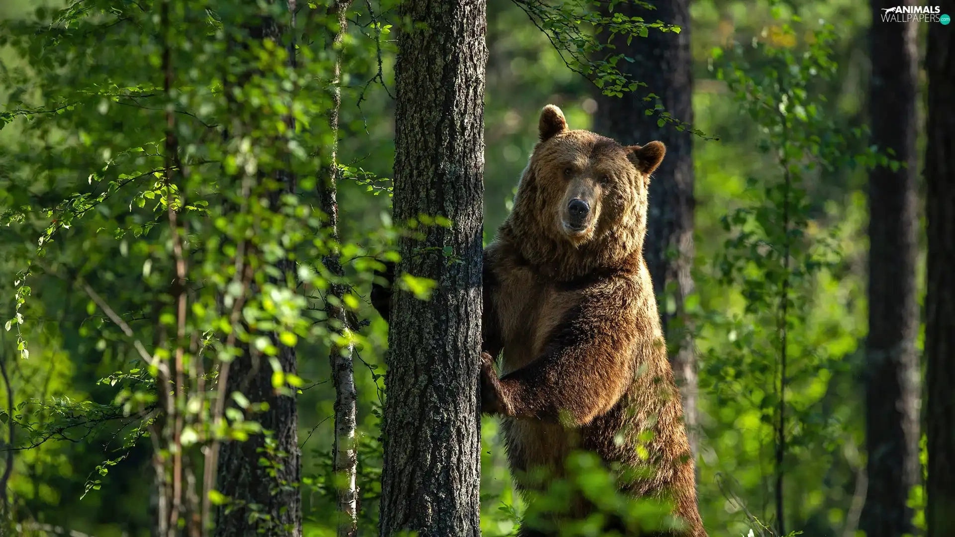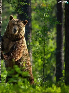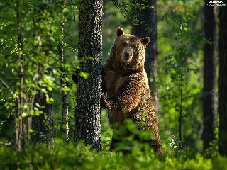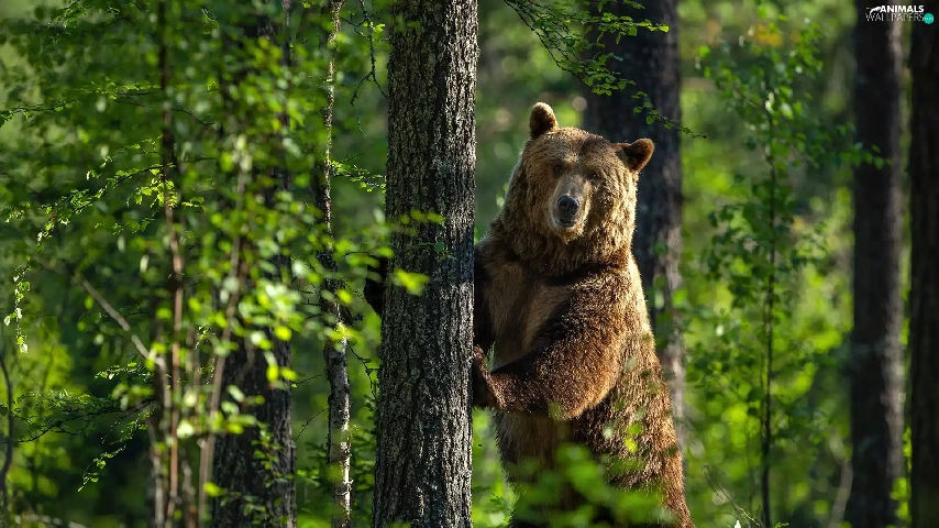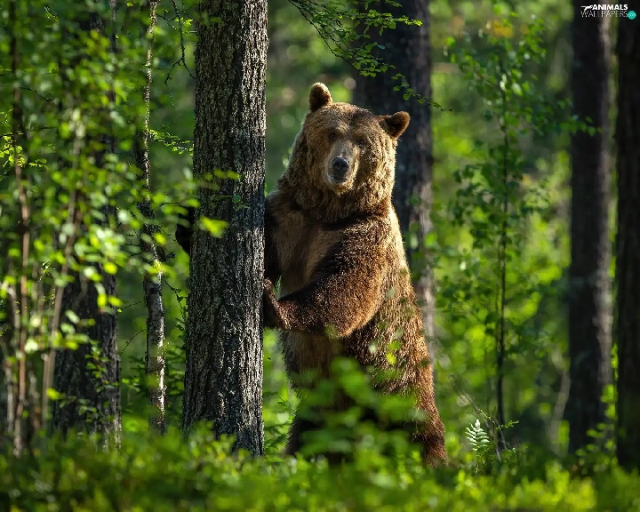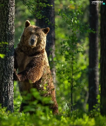 Bear, trees, green, forest