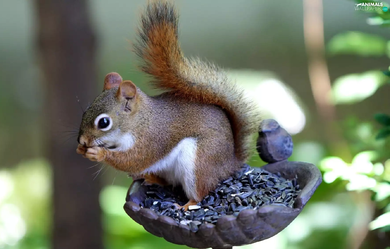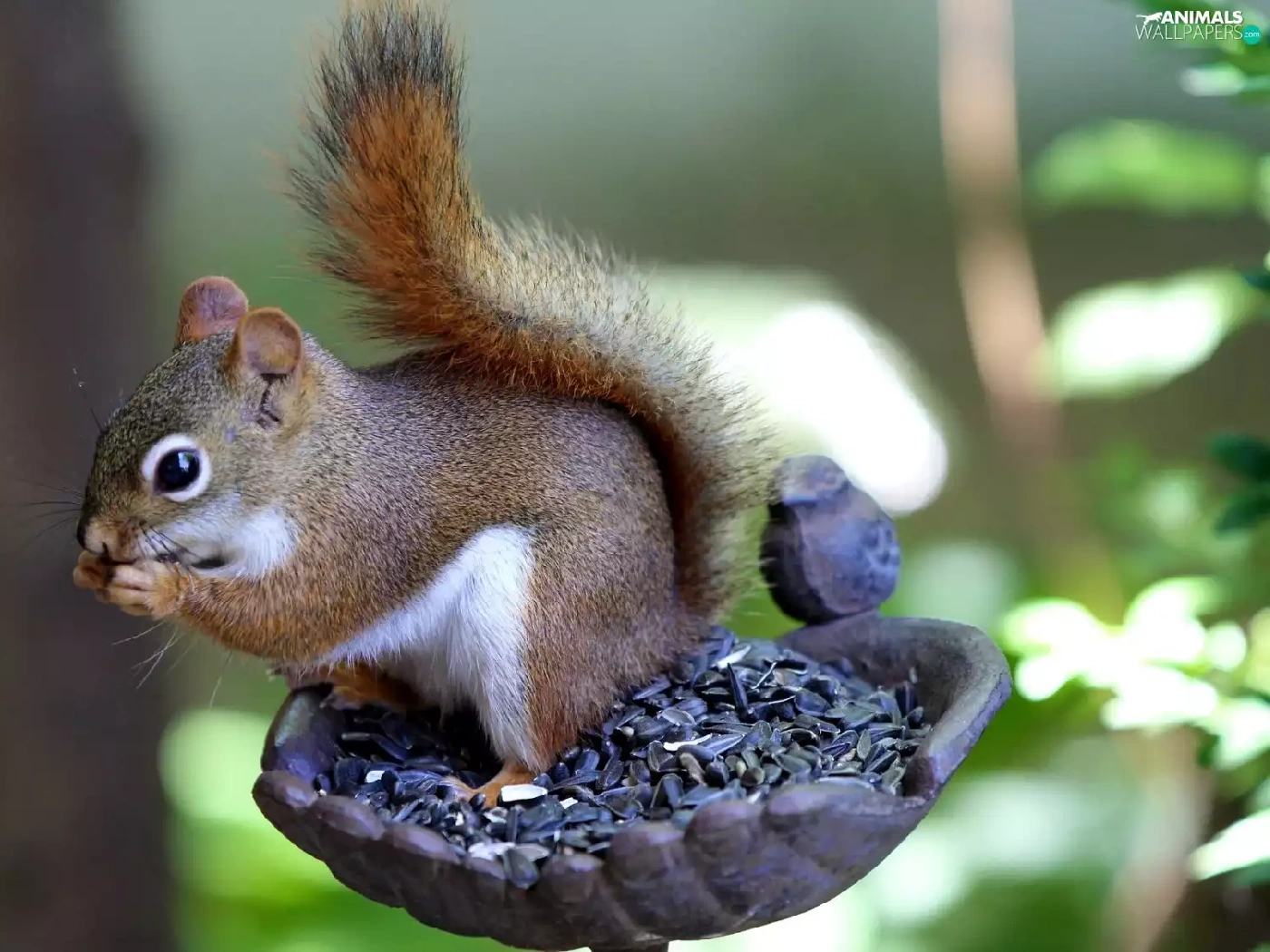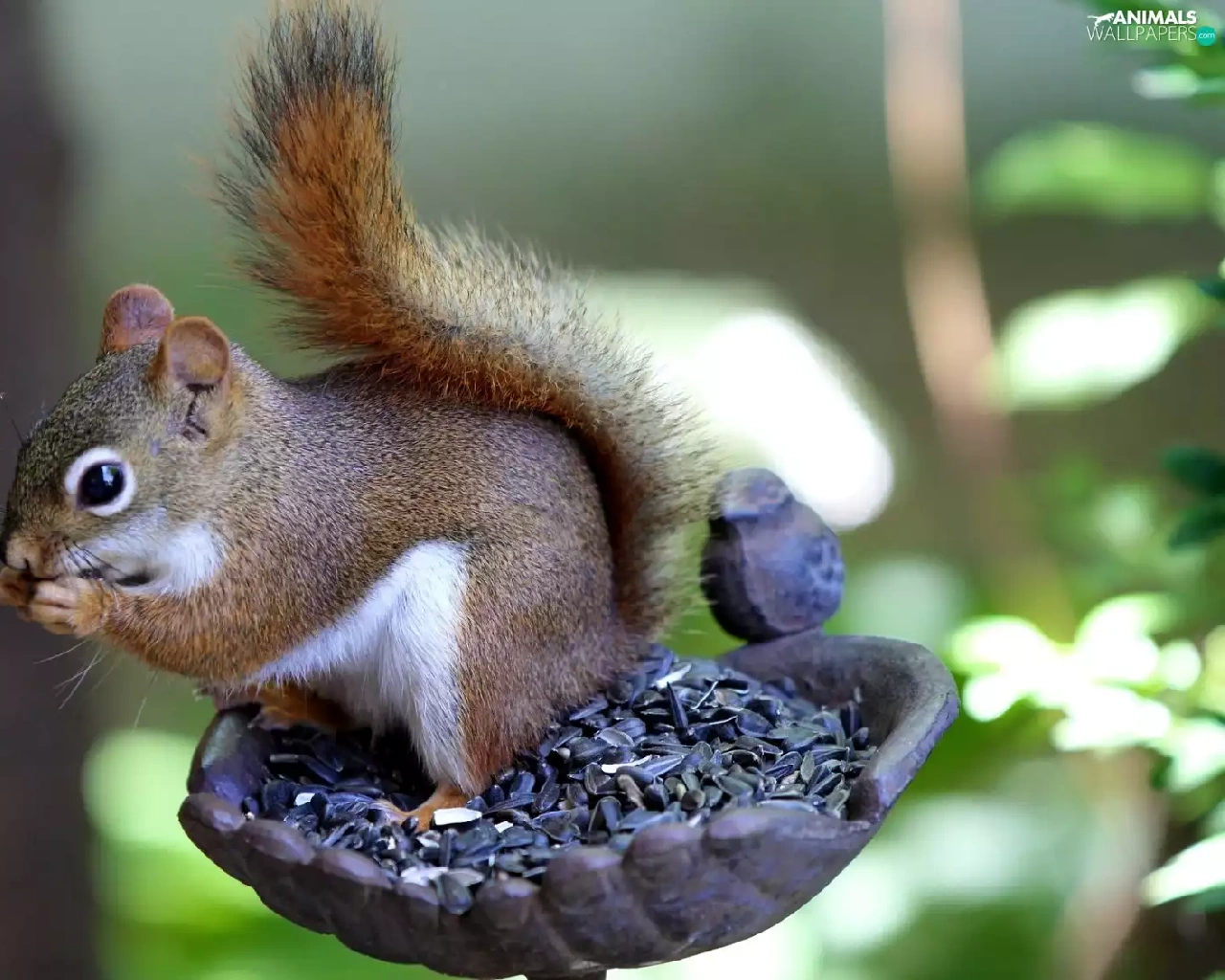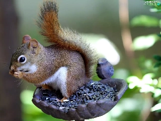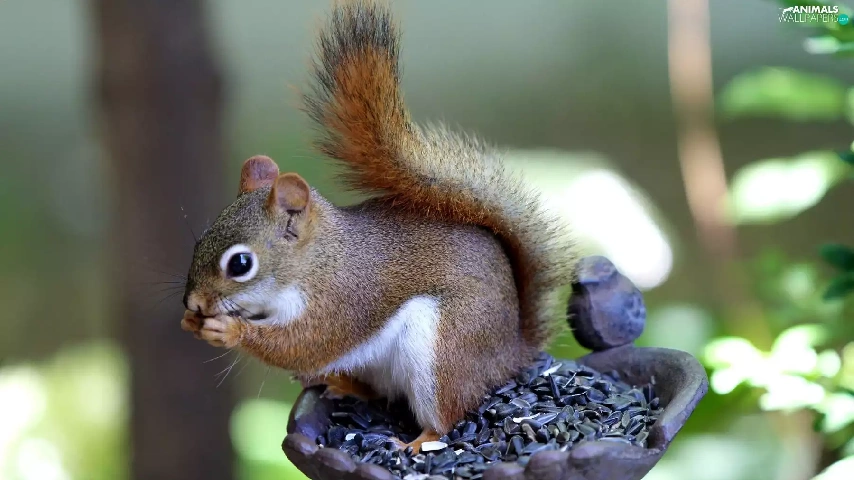 sunflower, forest, Bird, grains, squirrel