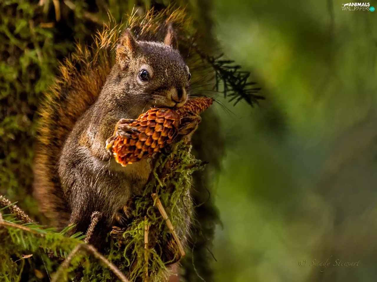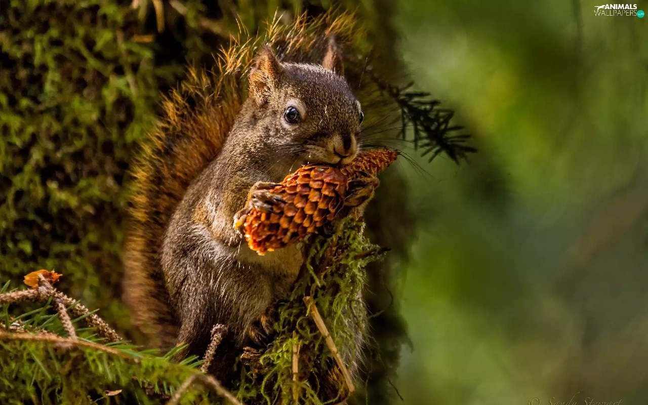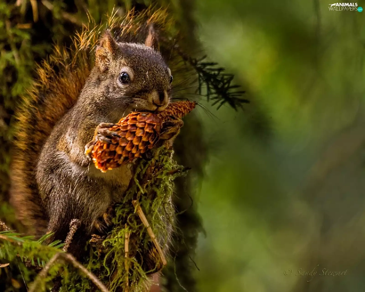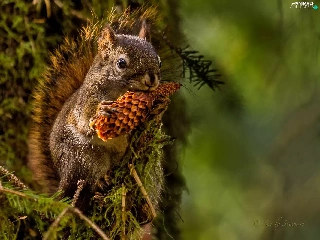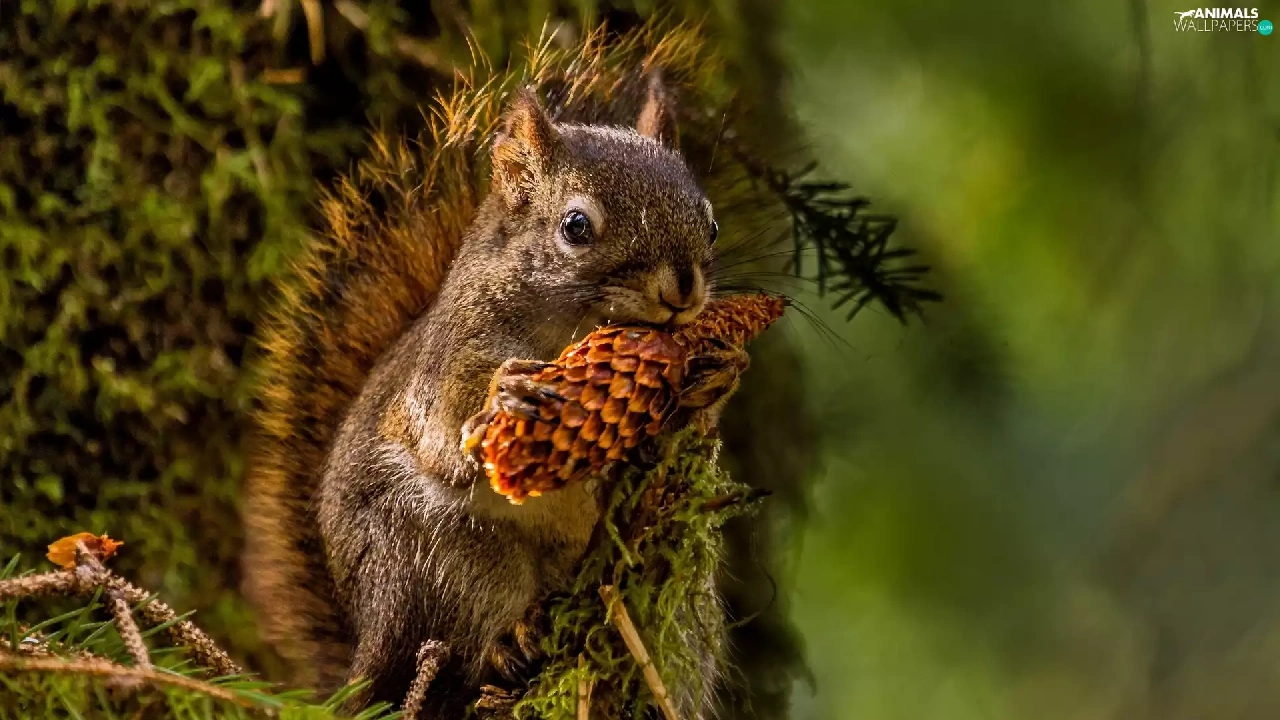 forest, squirrel, cone