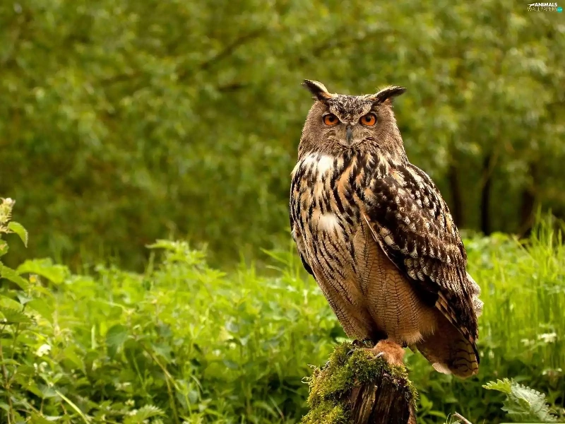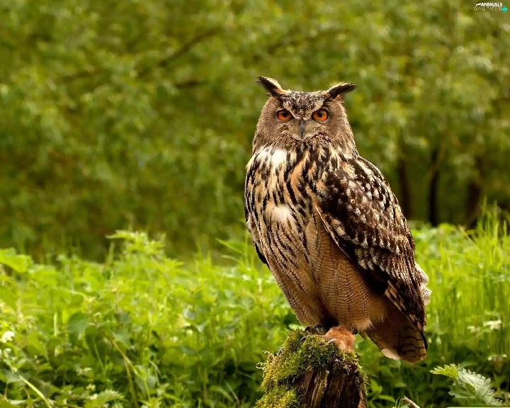 owl, forest, grass, Asio otus