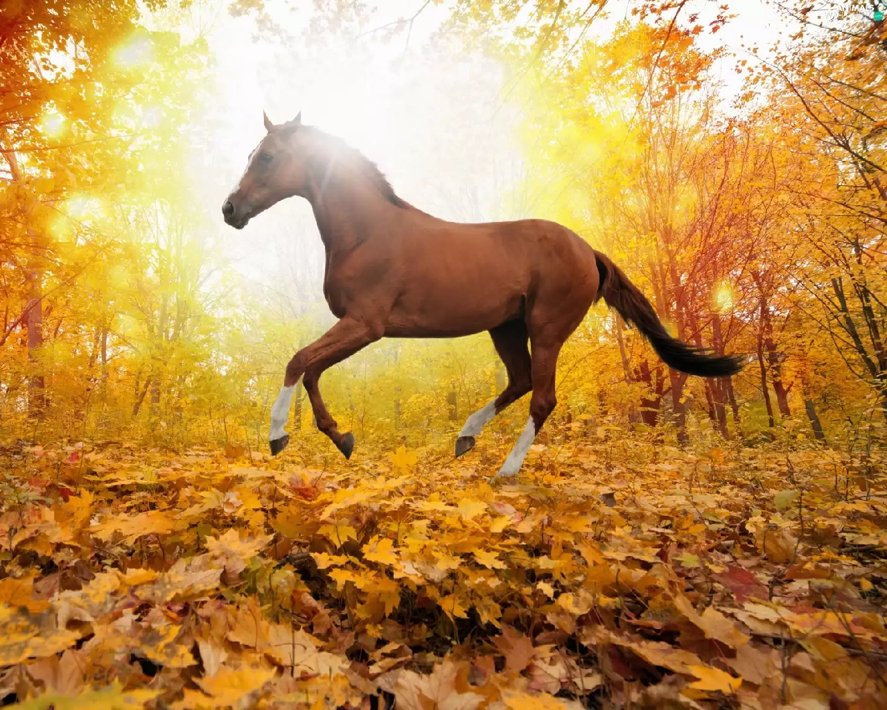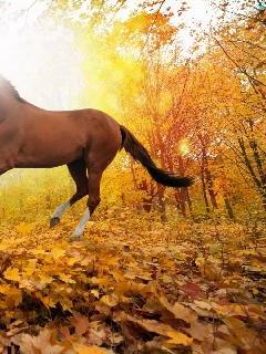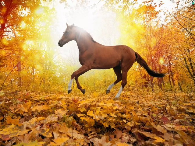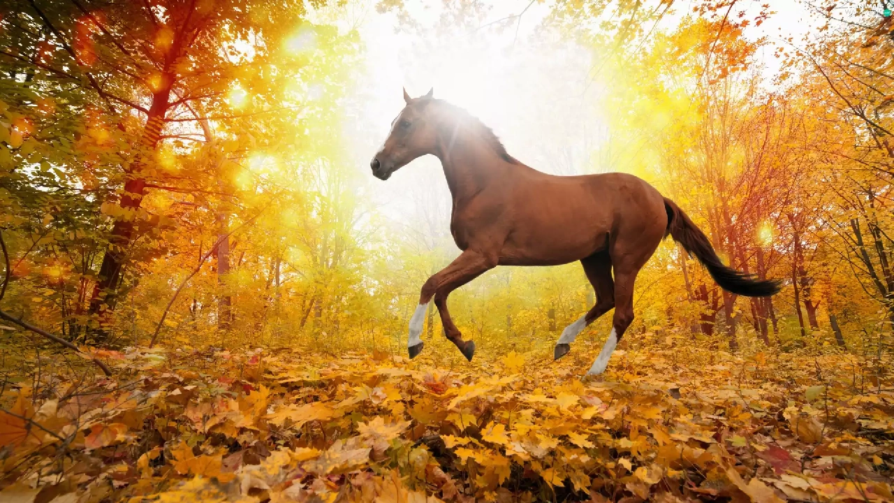 Horse, Leaf, autumn, forest
