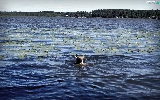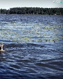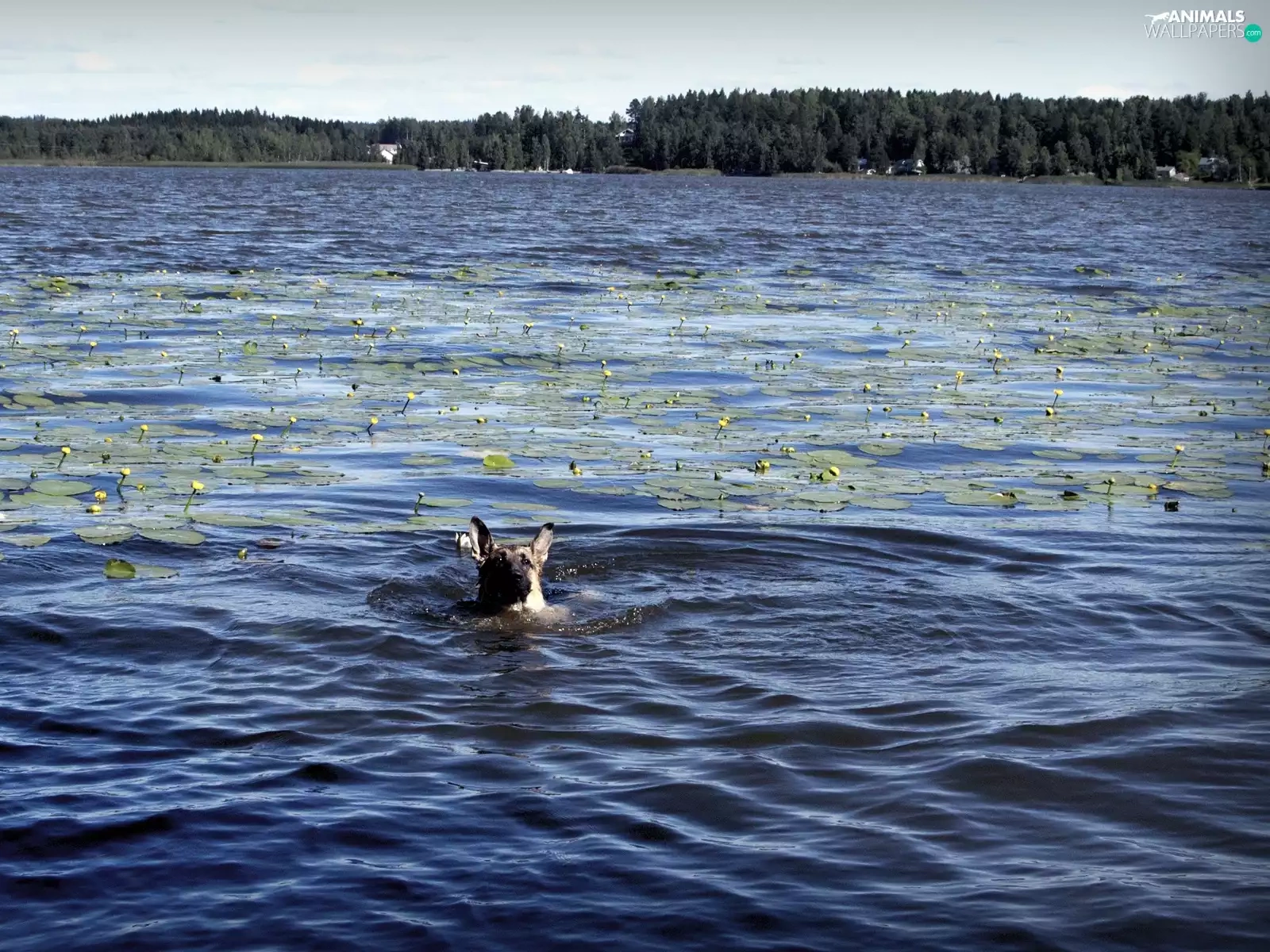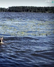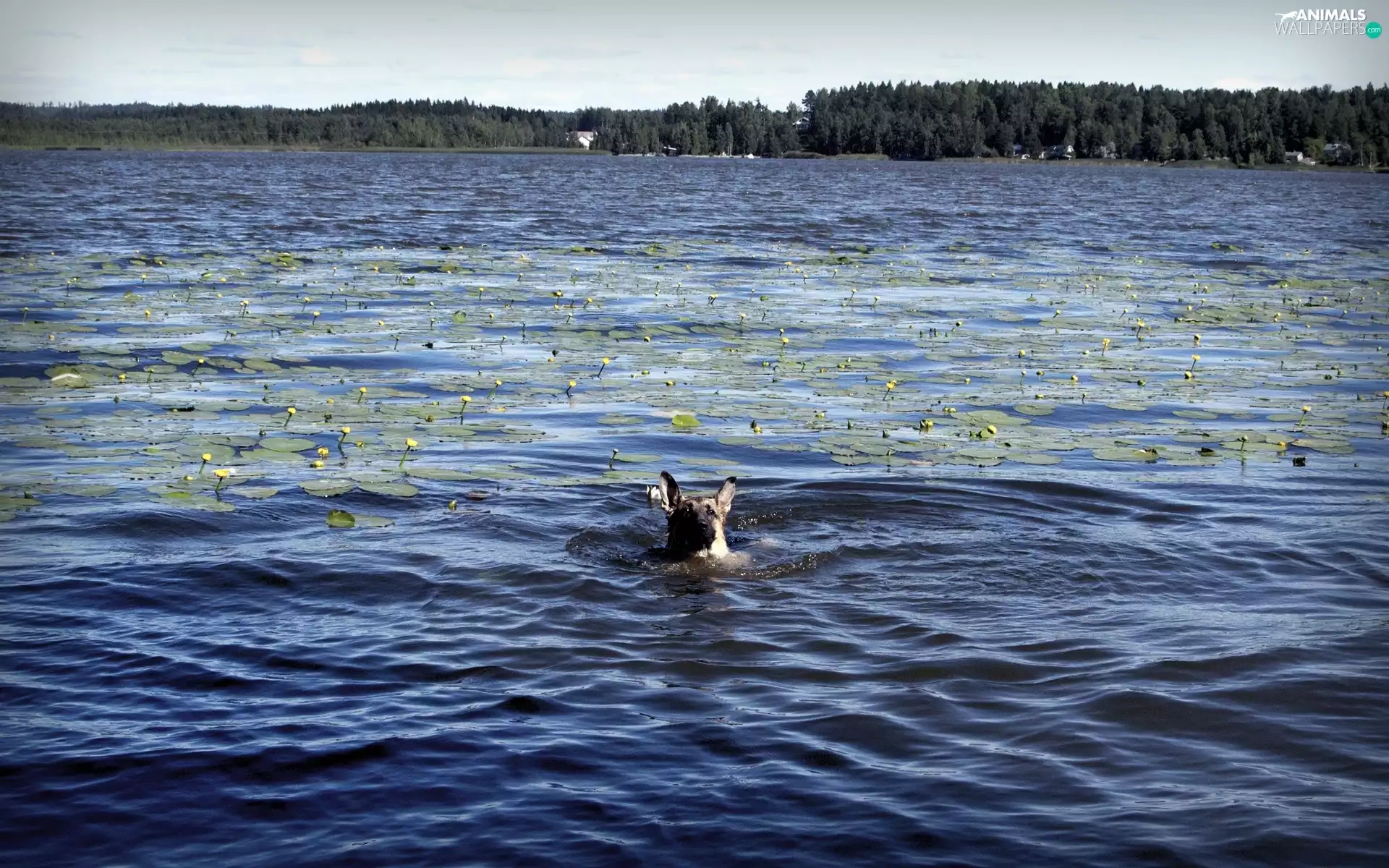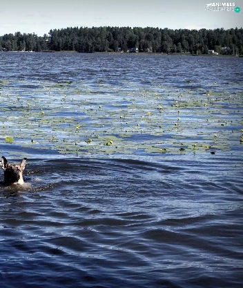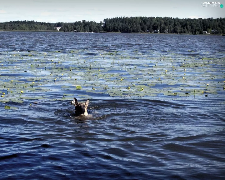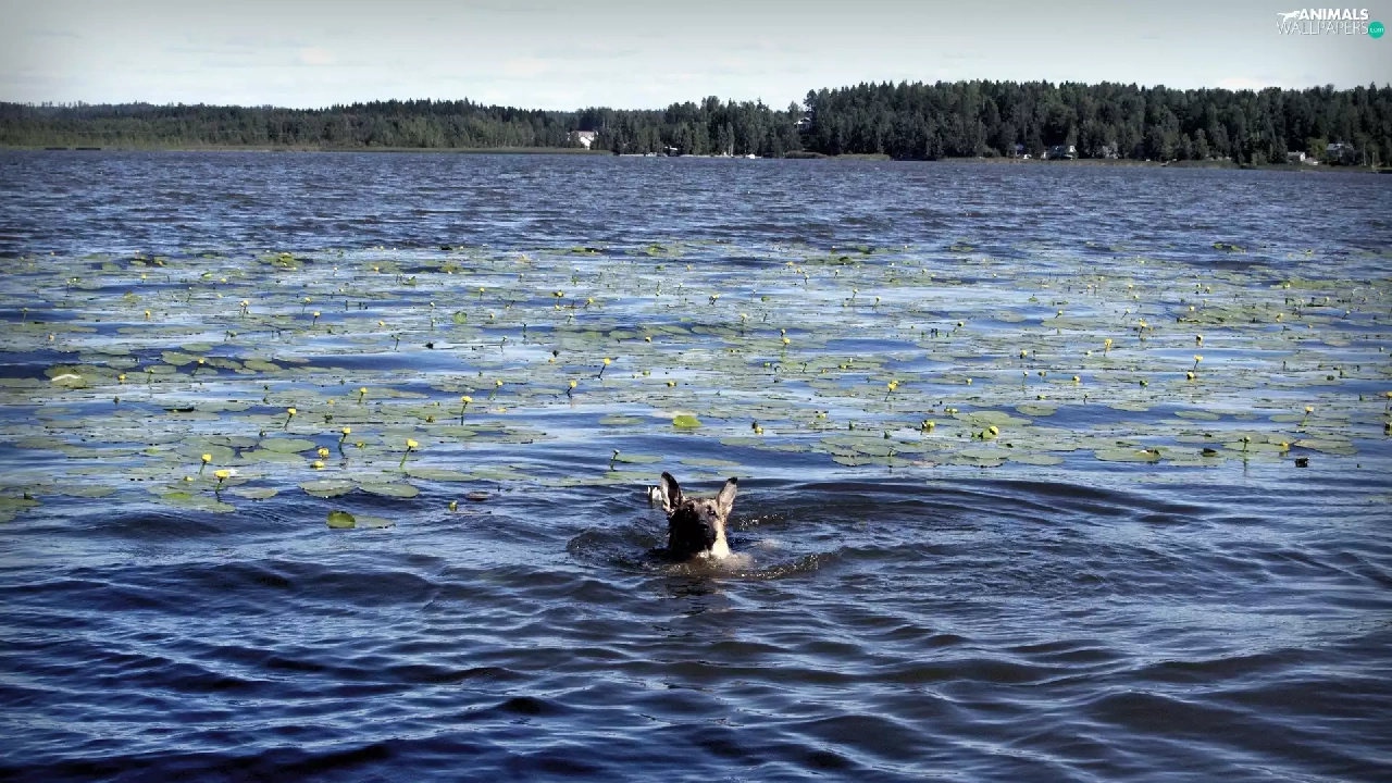 forest, dog, lake