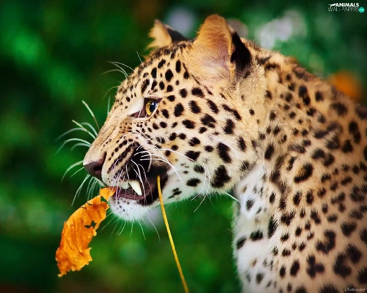 Leopards, leaf, Autumn, forest