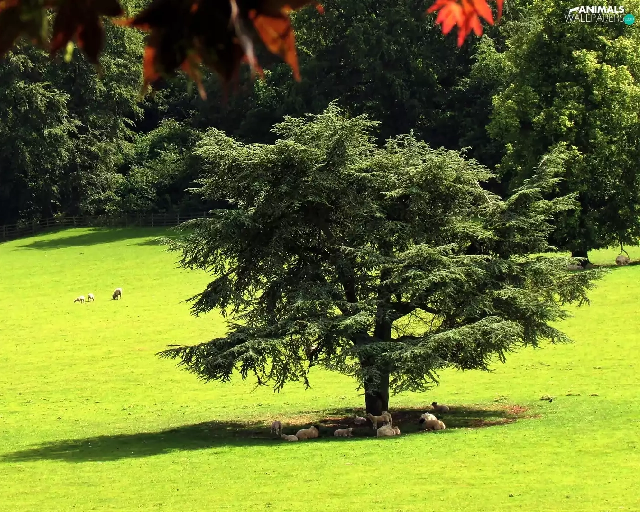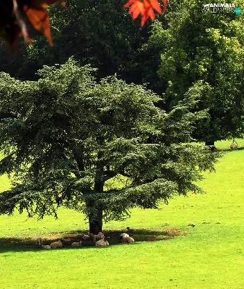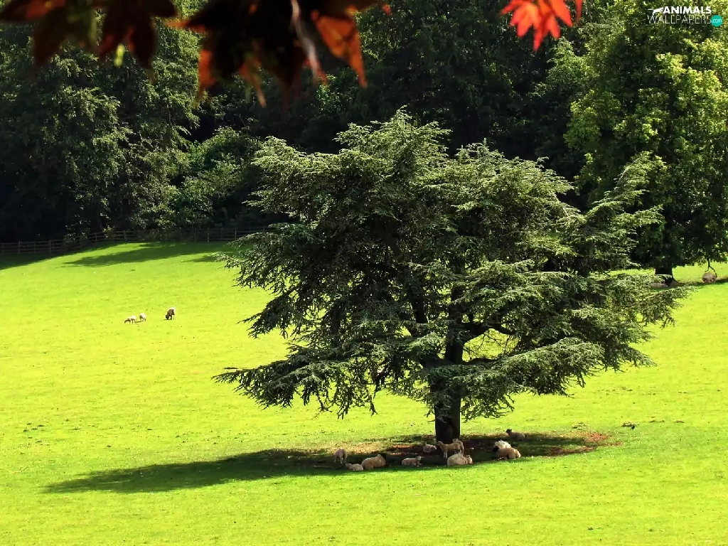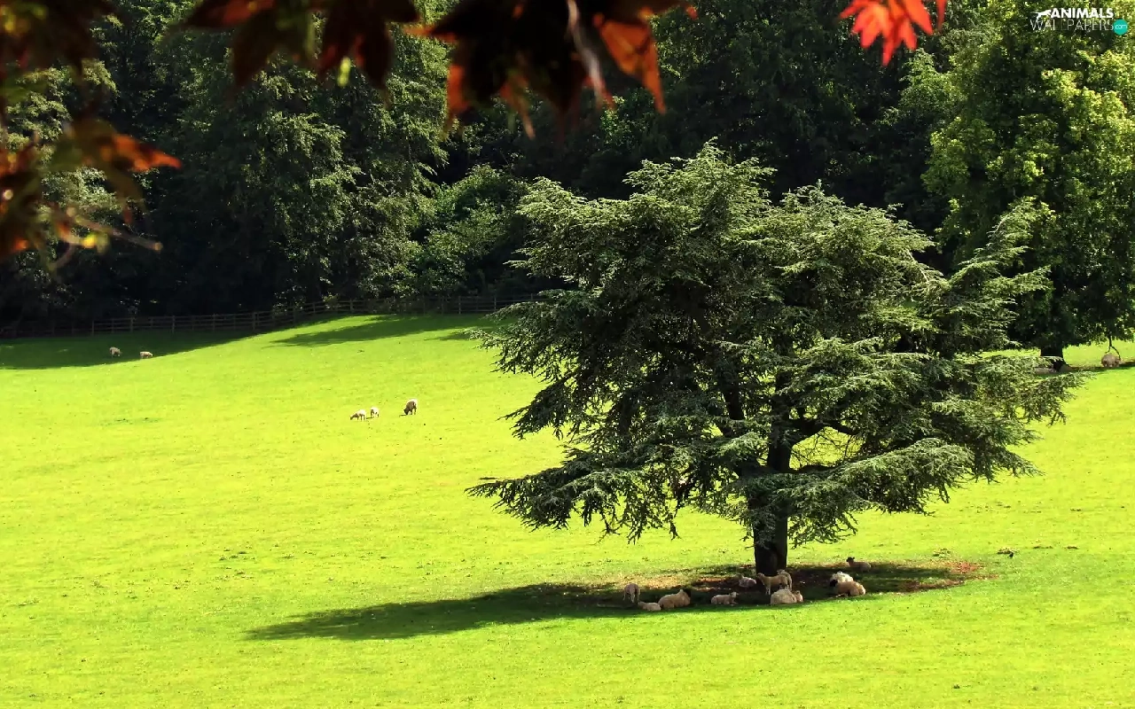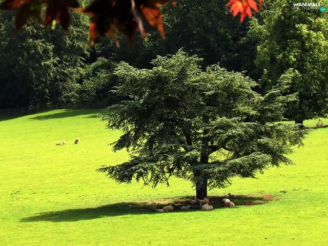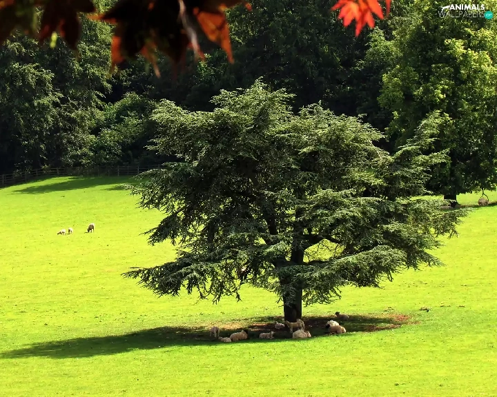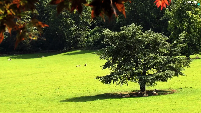 forest, summer, Meadow, Sheep, flash, luminosity, ligh, sun, Przebijające