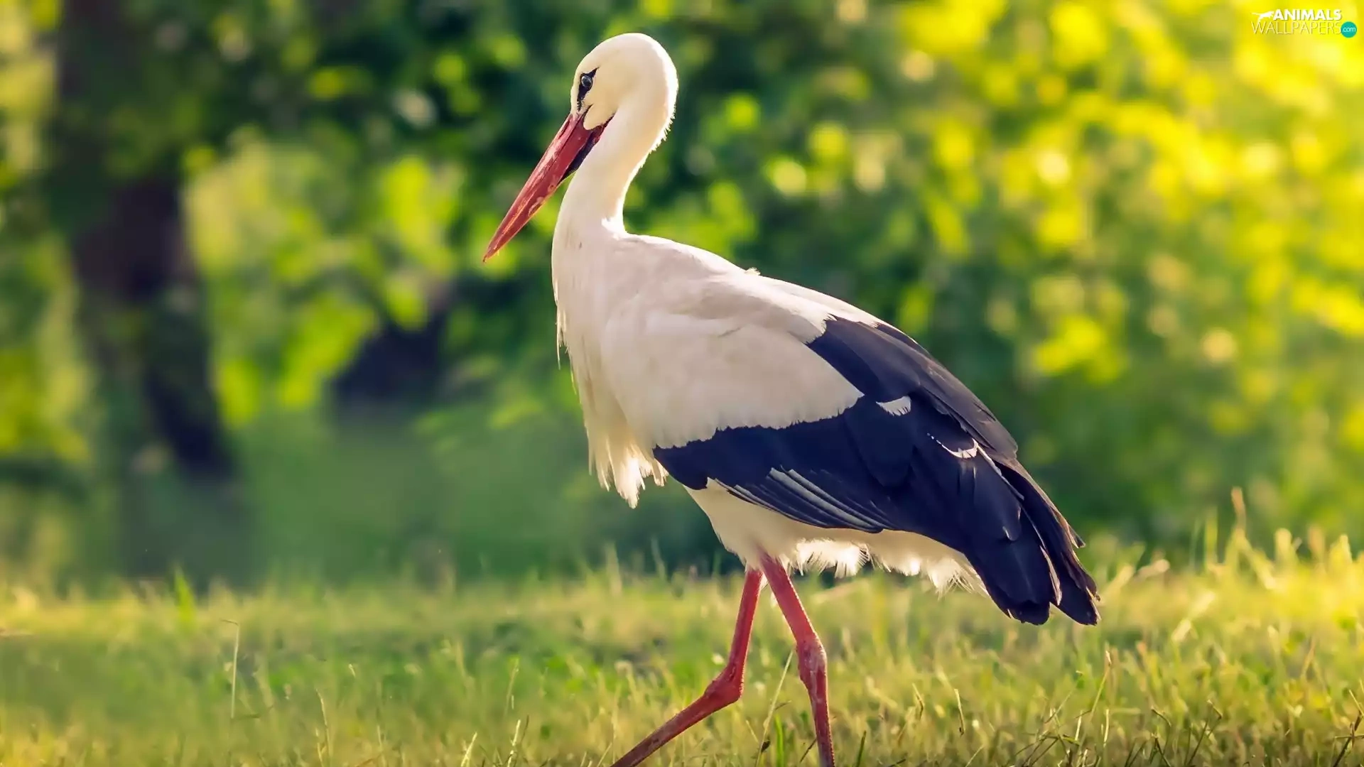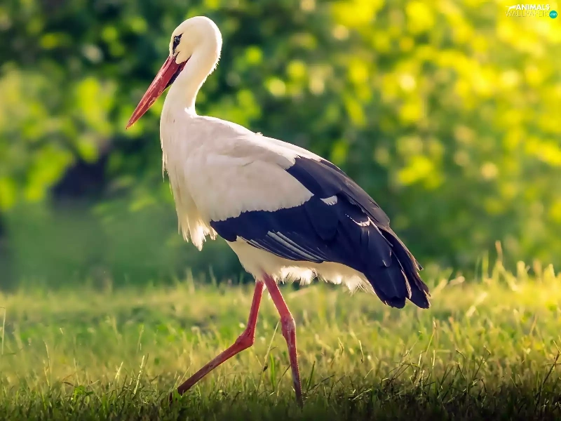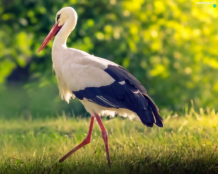 forest, stork, Meadow