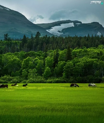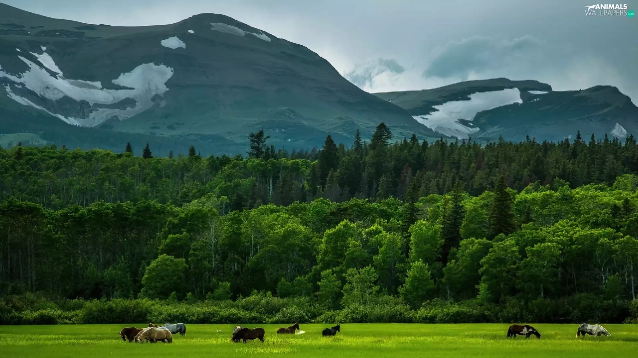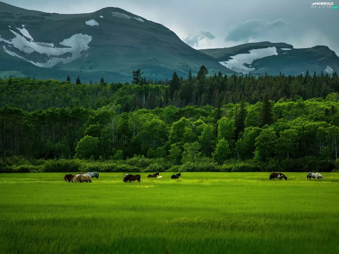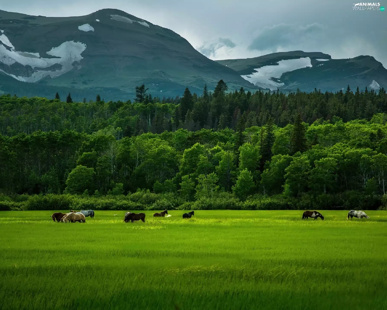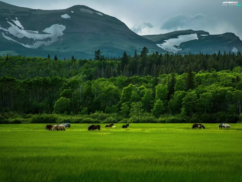 Mountains, bloodstock, corn, forest