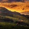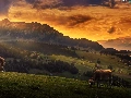 Cows, Great Sunsets, forest, Houses, Mountains