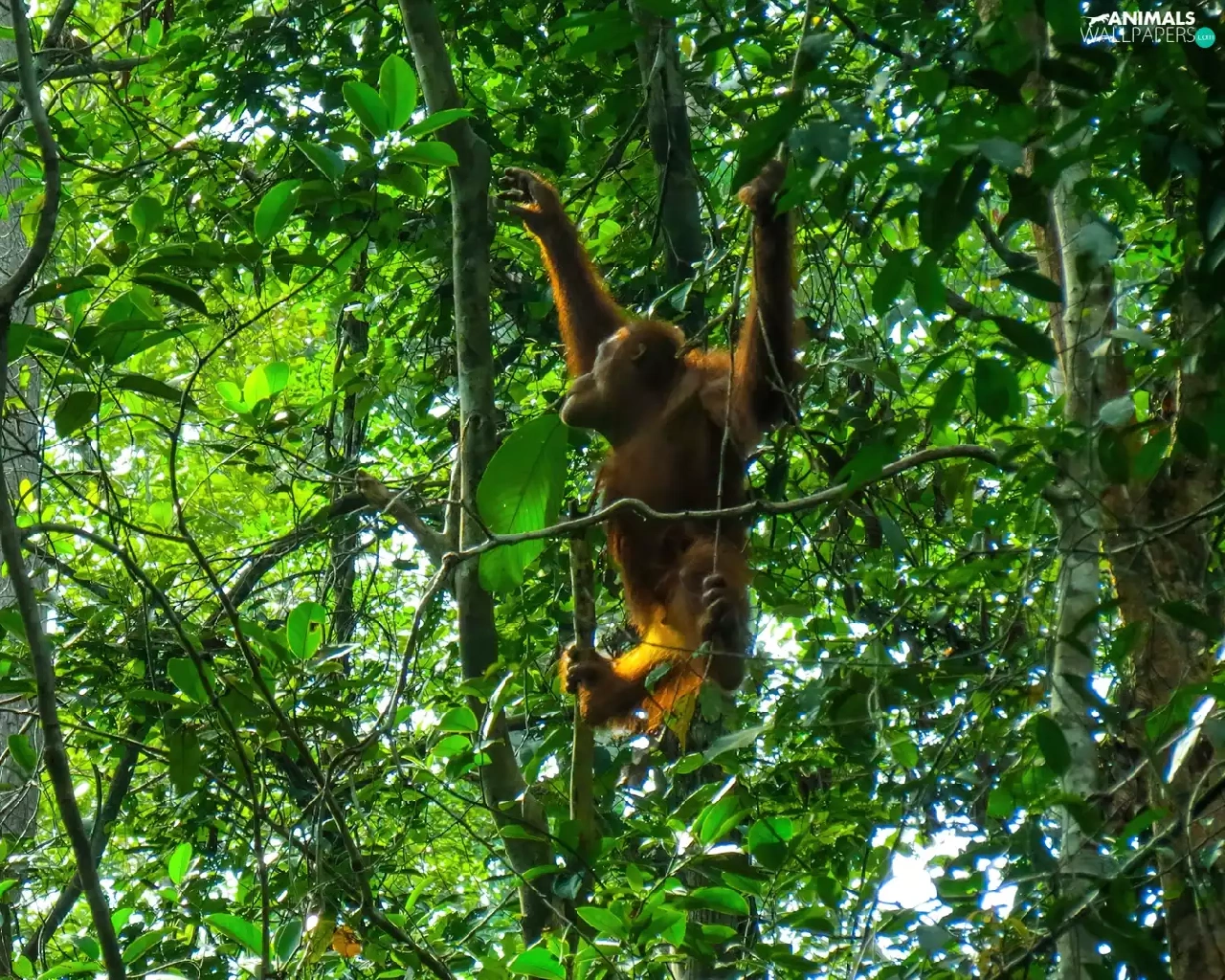orangutan, tropical, Borneo, forest