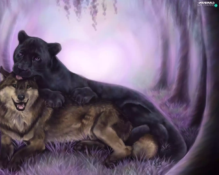 forest, Wolf, Panther
