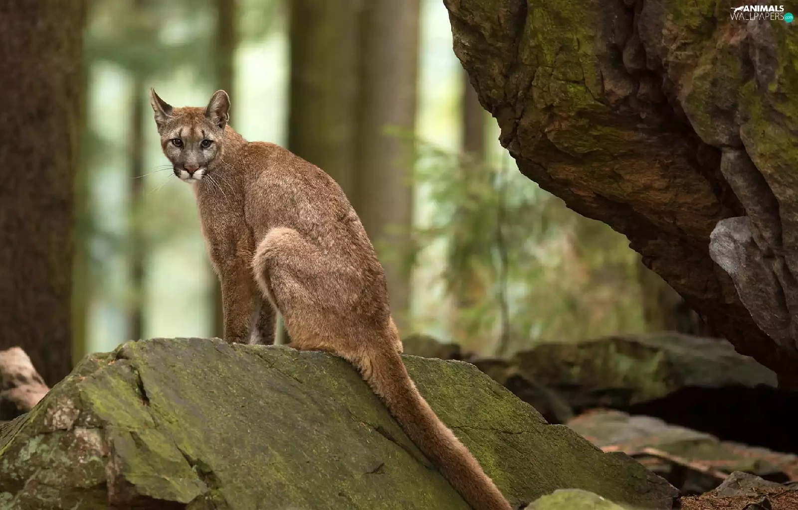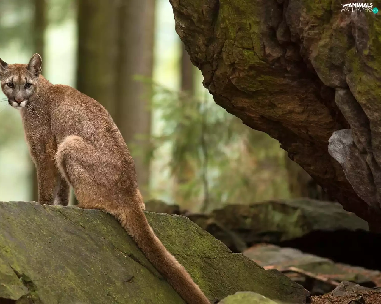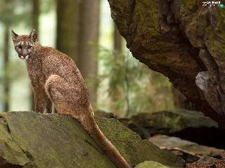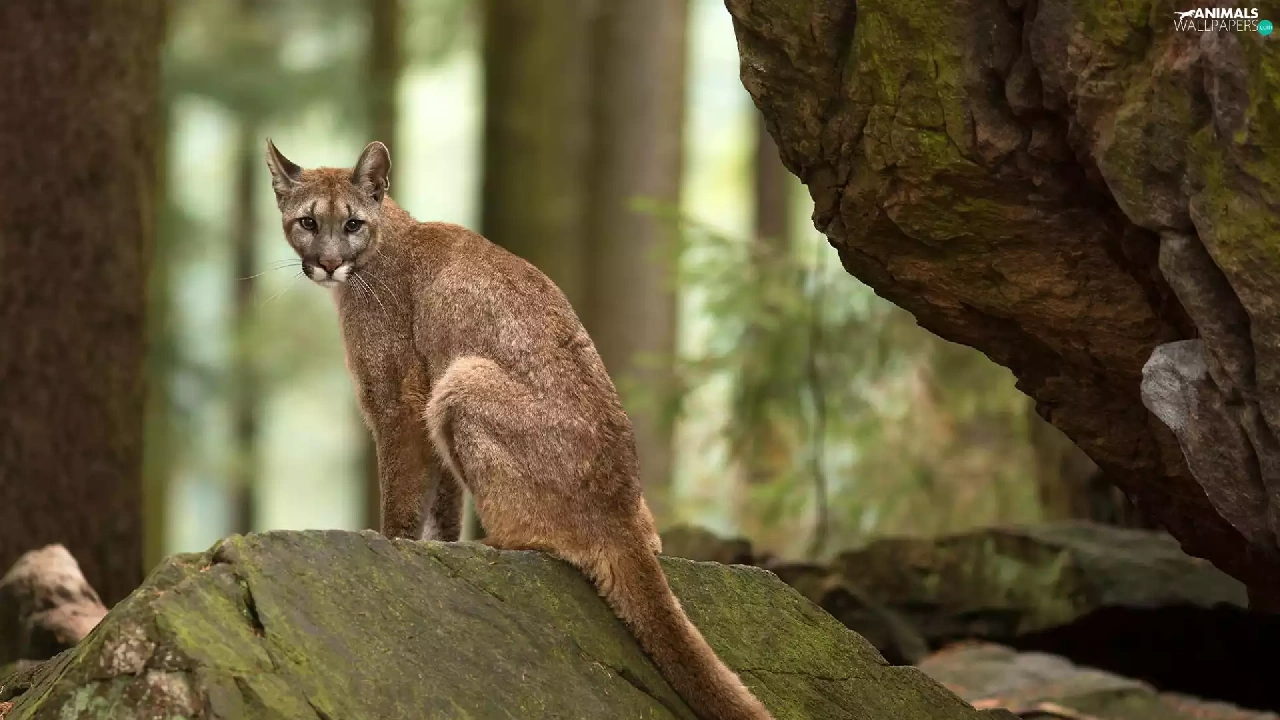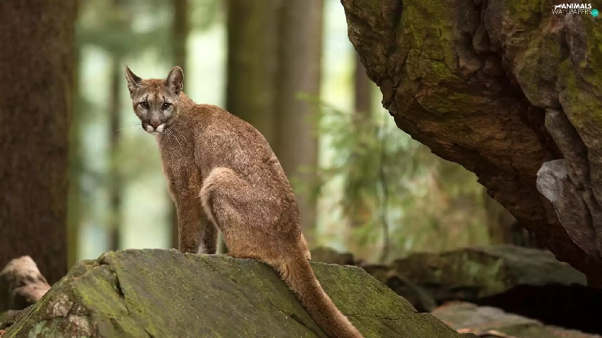 forest, cougar, rocks