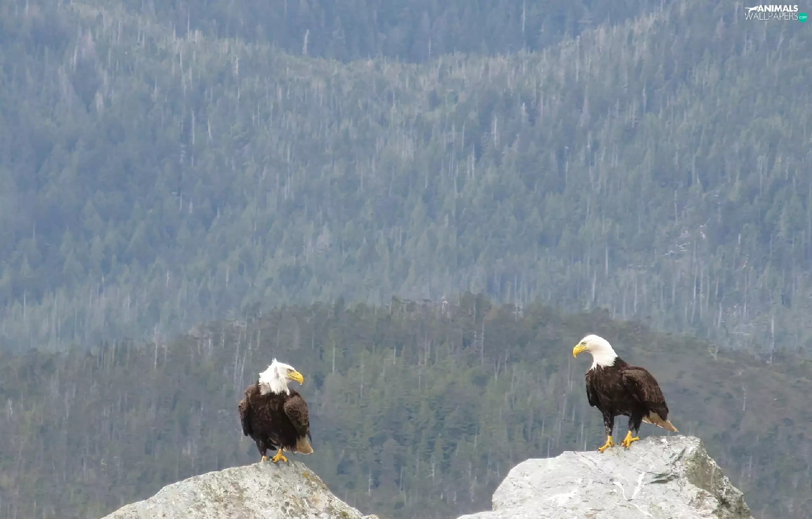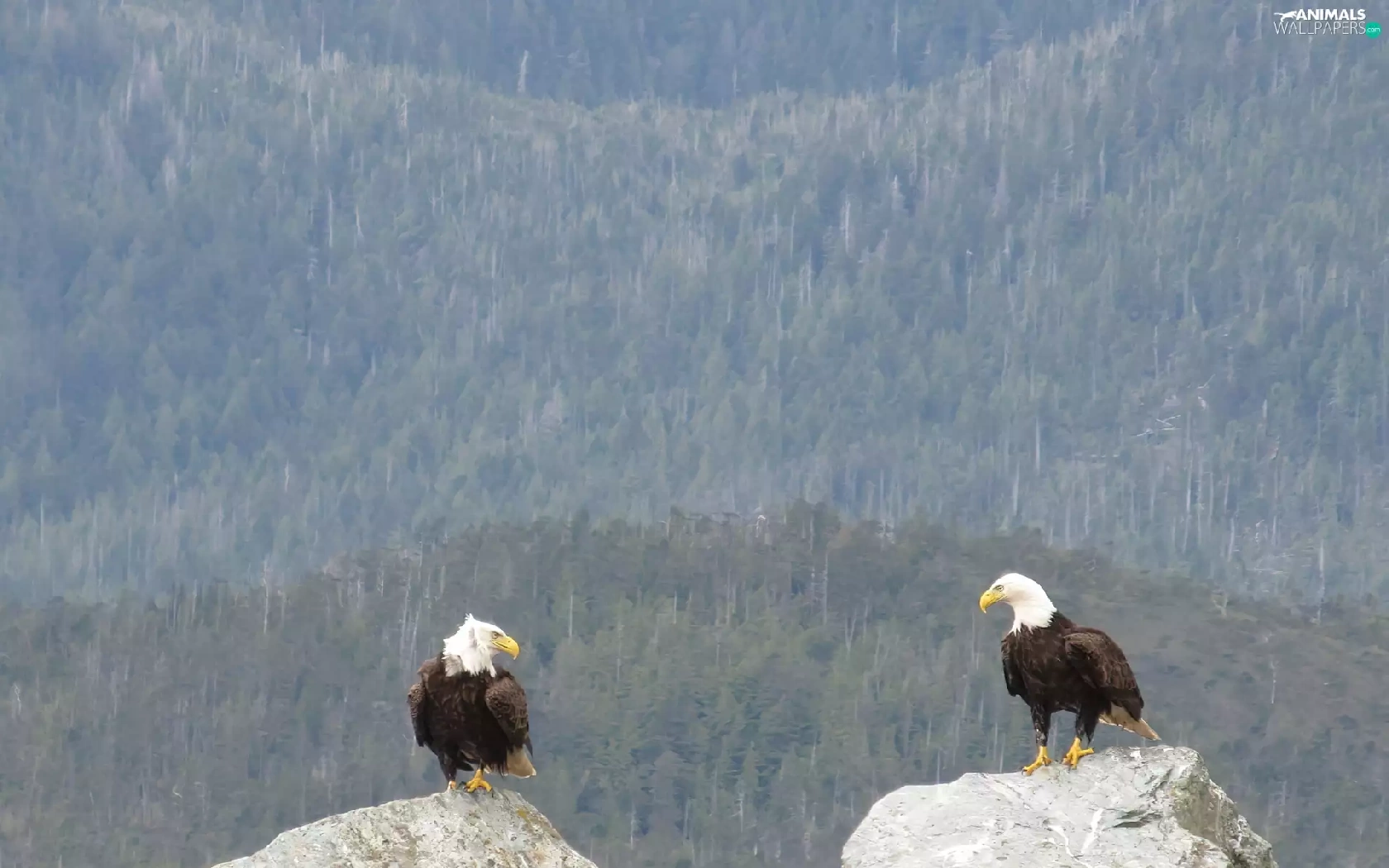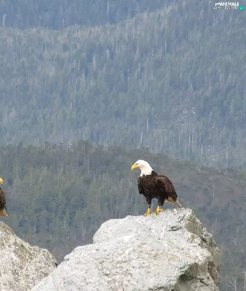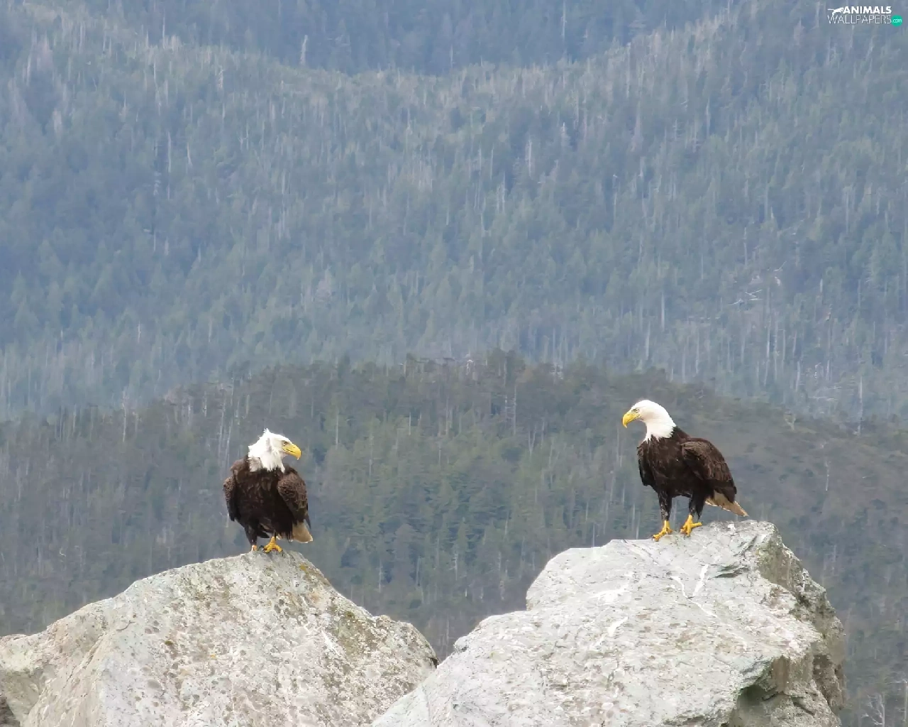 forest, Eagles, rocks