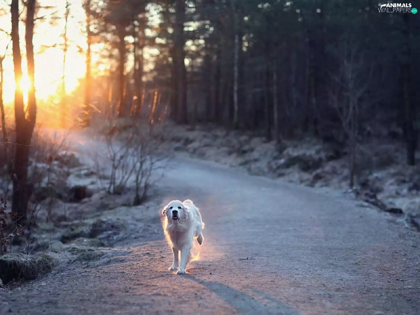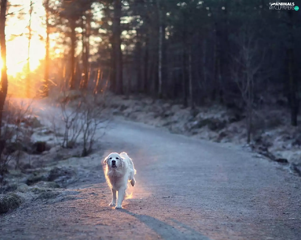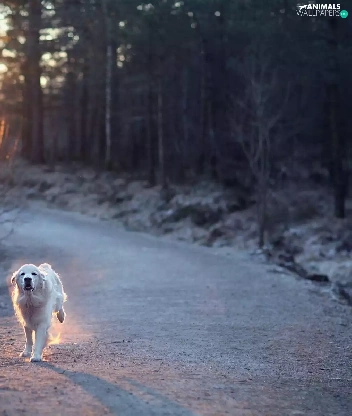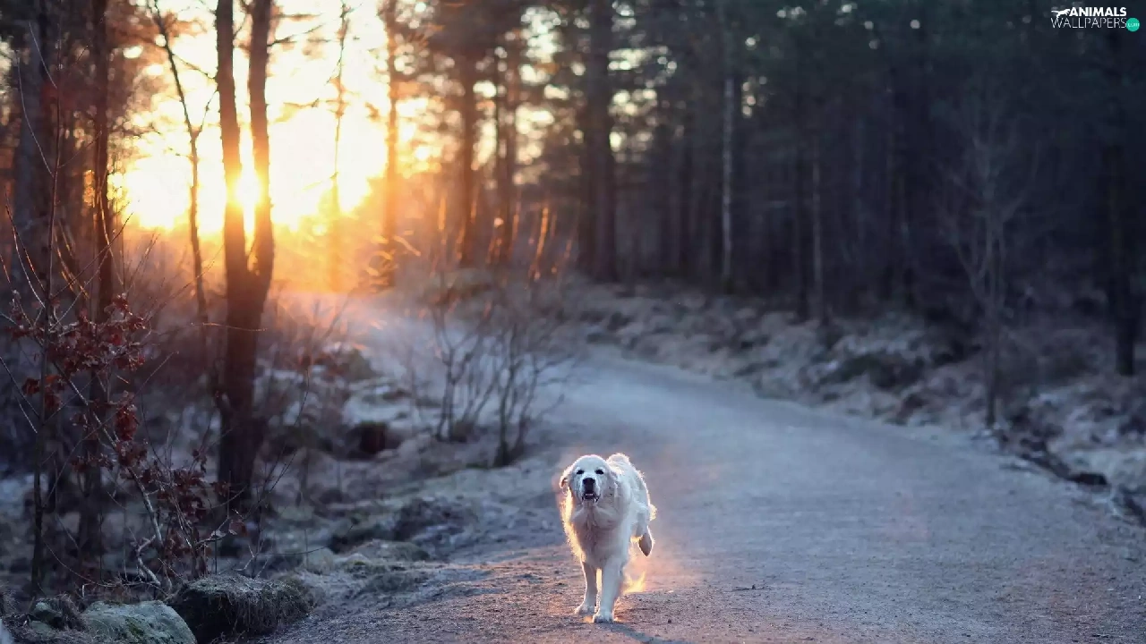 sun, forest, running, dog, Way